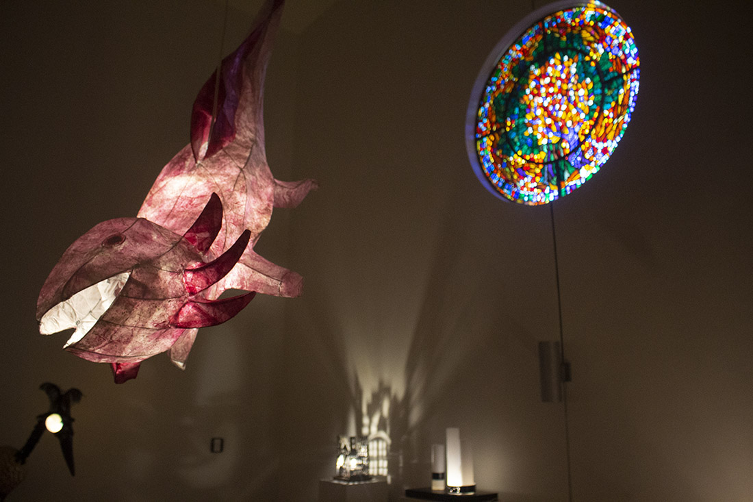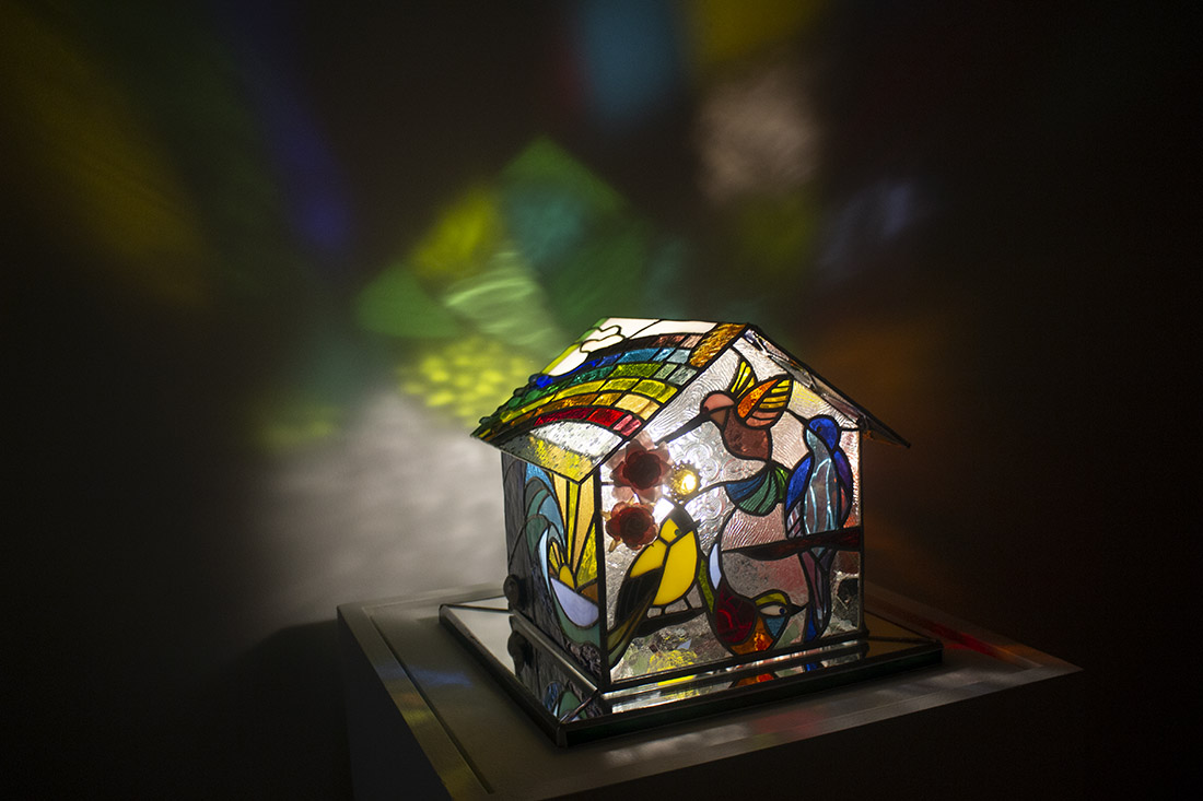 Kalina Todorov’s “Family Bird House,” made of stained leaded glass, is on display as part of “Illumination.” (Port City Daily/Shea Carver)
