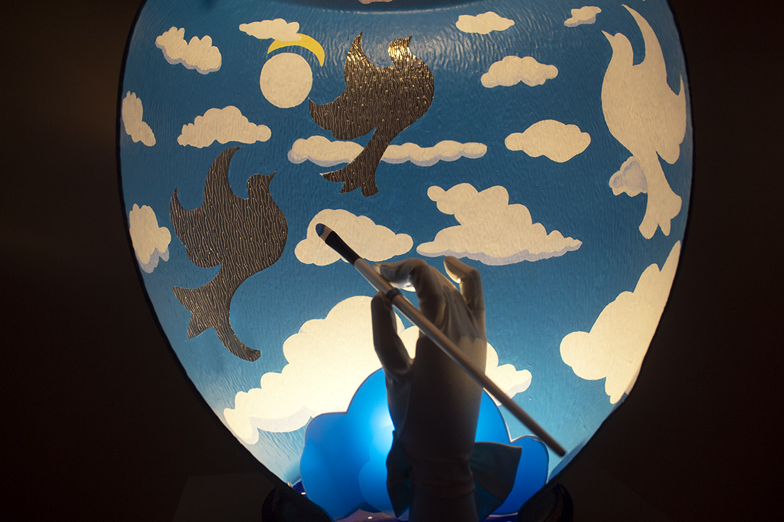 Deborah Bluestein and Jeanie Redick’s “Pandora Revisited” is on display in CAM’s “Illumination.” (Port City Daily/Shea Carver)
