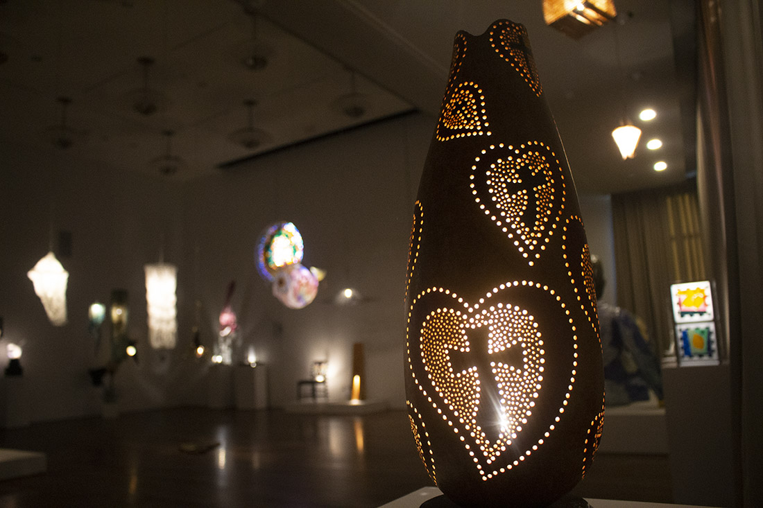 Kay Lovingood’s gourd is titled “Hearts and Crosses,” on display as part of “Illumination.” (Port City Daily/Shea Carver)