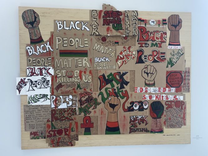Forty-six nationwide artists showcase 77 pieces. Each tackle issues of racial injustices.