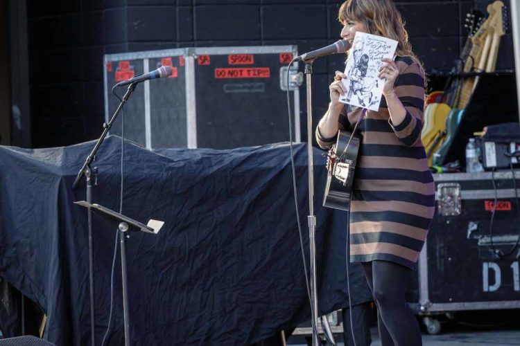 American singer-songwriter Margaret Glaspy was supposed to open the show, but a last-minute change welcomed artist Nicole Atkins to the stage instead. Though Atkins normally plays with a full band, she performed solo — and highlighted another of her talents, as an illustrator. Atkins studied art at UNC Charlotte, where she got her start in music, and held a slow-dance contest during her set for the audience to win one of her artworks.