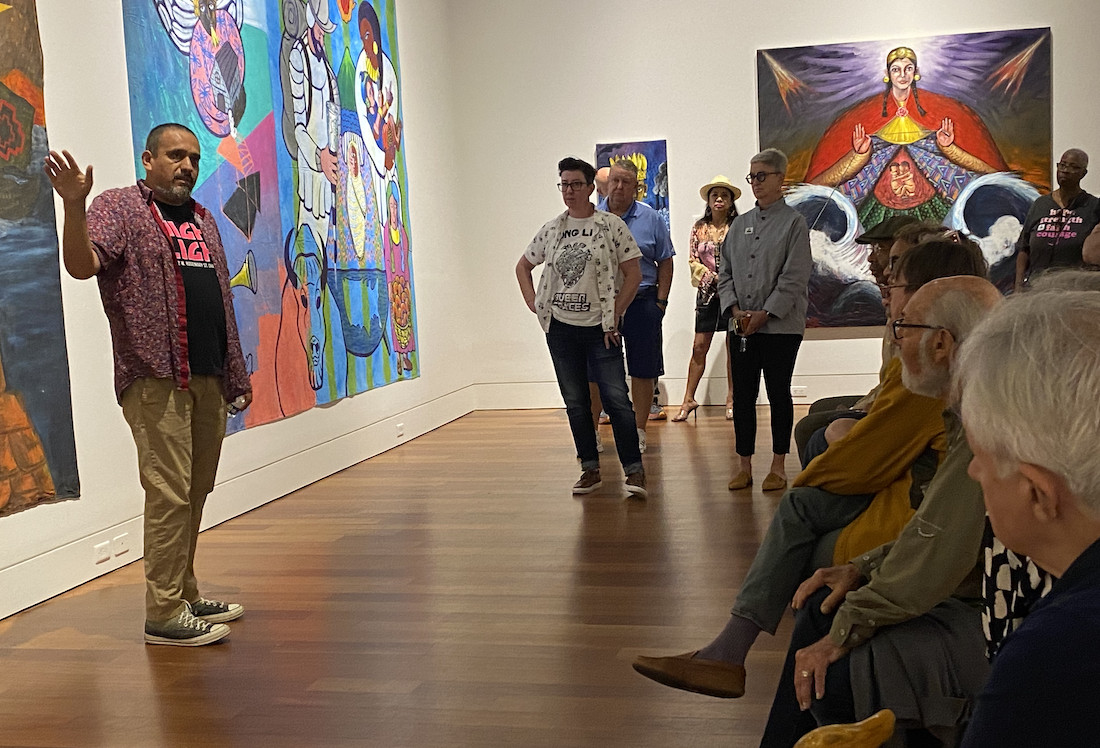 “This interaction starts in my artist studio and reaches maximum splendor when the art is in view,” he told the audience. “With painting, I channel and communicate narratives.”