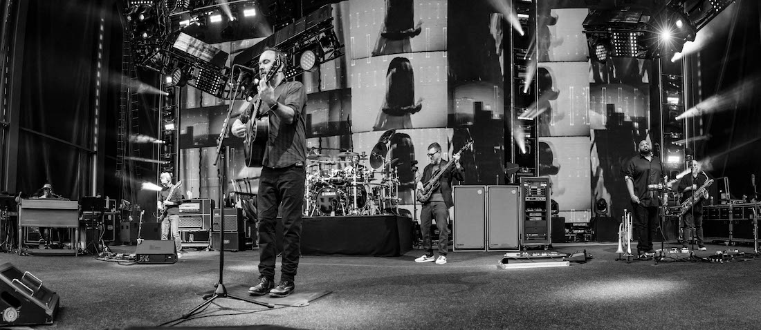 The acoustic guitarist’s energy was in high gear, even downright giddy and a little miscshievous — dancing, smiling, singing, and praising his band members, Carter Beauford, Stefan Lessard, Tim Reynolds, Rashawn Ross, Jeff Coffin and Buddy Strong, during solos.