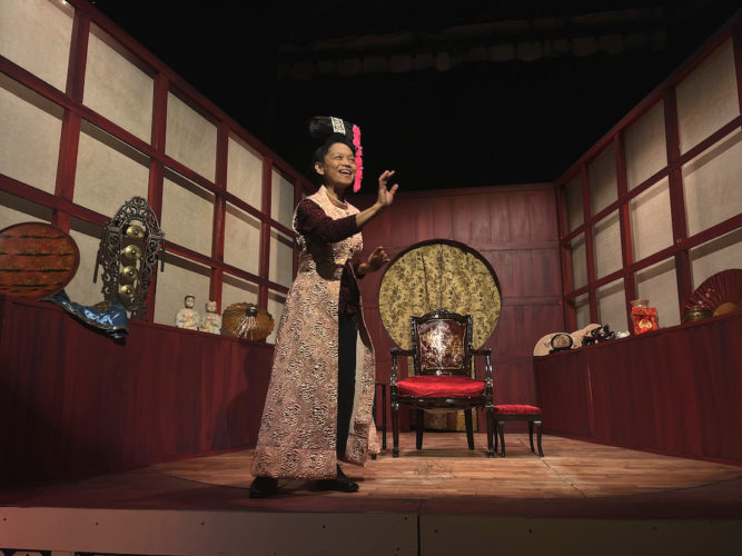 The 90-minute play consists of two people: Afong Moy, performed by Mirla Criste, and her translator Atung, acted by Chad Hsu.