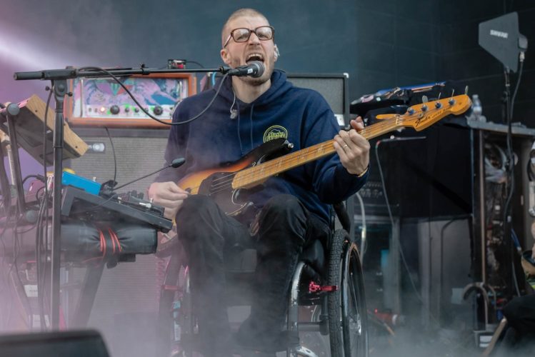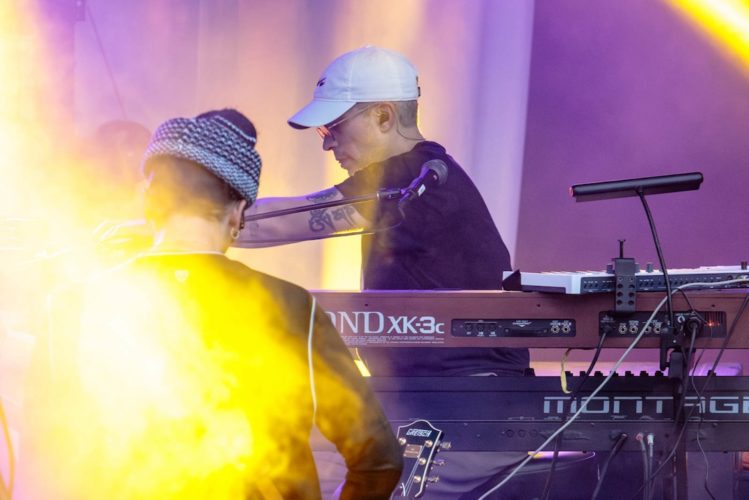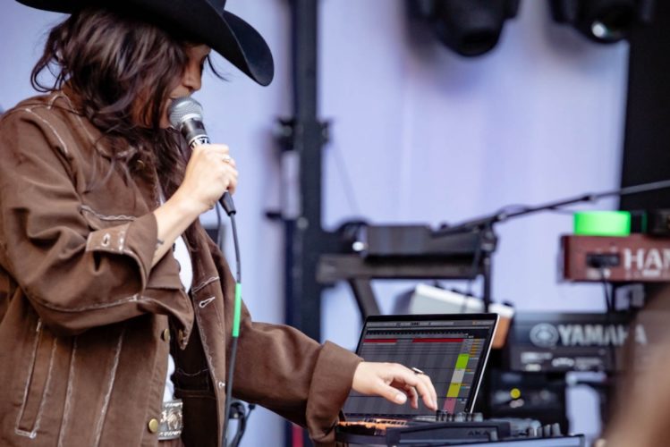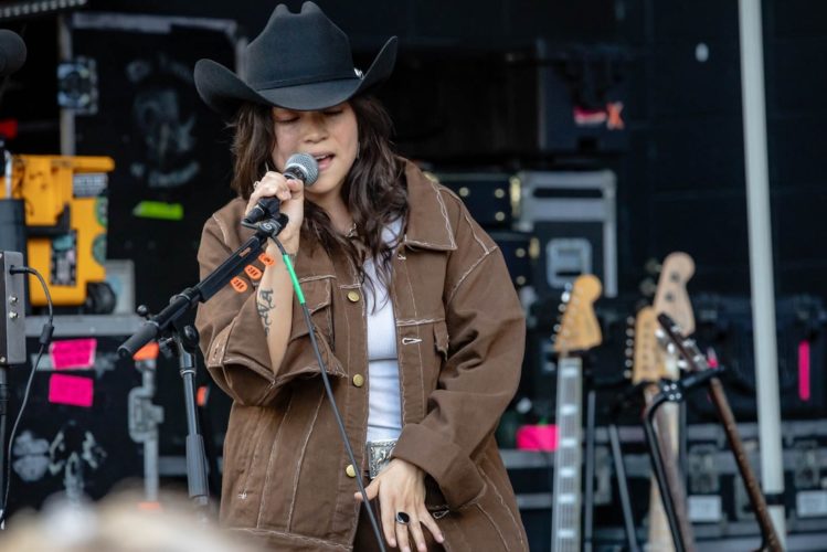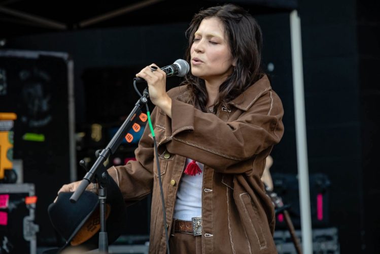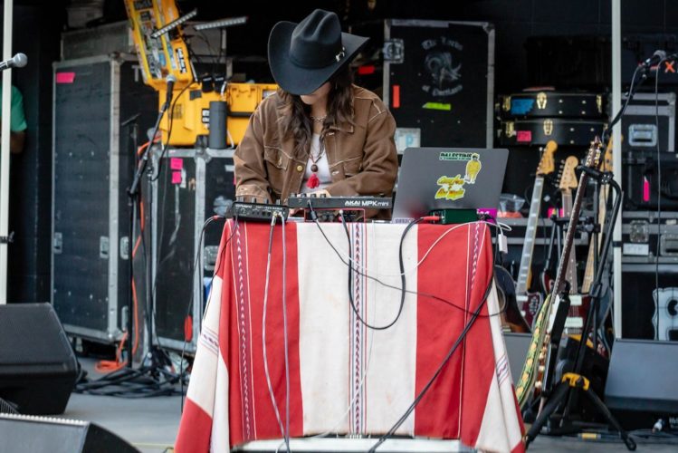 As well opening act Reyna Tropical, featuring Fabi Reyna; the group originally was founded as a duo with Nectali “Sumohair” Díaz. However, Díaz passed away in 2022. She carries on the torch and also recognized the indigenous people “who lived here first” Thursday. Reyna used beats and backtracks from a computer to produce electro-cumbria sounds accompanying her songs. She also shreds on guitar and has played with bands including Sleater-Kinney.