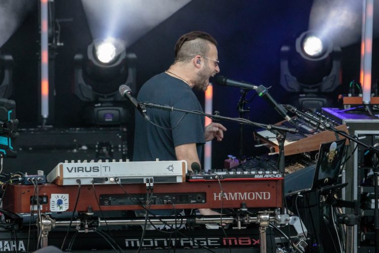 Philadelphia jam band The Disco Biscuits played the amphitheater for the first time on July 14. Allen Aucoin (drums), Marc “Brownie” Brownstein (bass guitar, vocals), Jon “The Barber” Gutwillig (guitar, vocals), and Aron Magner (keyboards, synths, vocals) blend psychedelic rock, electronic music, soul, blues, jazz and classical music into one sound.
