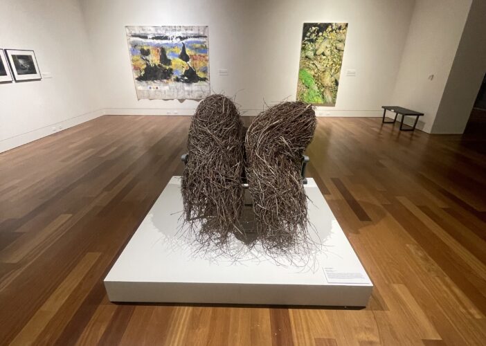On display in the Hughes Wing, the exhibit contains sculptures, animation, paintings, collage work and photography, and is open through May 10. While some work focuses on connectivity to the environment, others capture the devastation from events like forest fires, Hurricane Helene, and infrastructure projects.