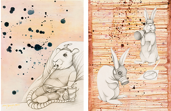 “I personally decided to show a series of pieces that spoke to the current state of affairs in our country in some ways,” Perry said. “The body of work was an allegory about corporate rats and helpless bunnies who were robbed of their land and made sick. In the end, the bunnies rebelled.”