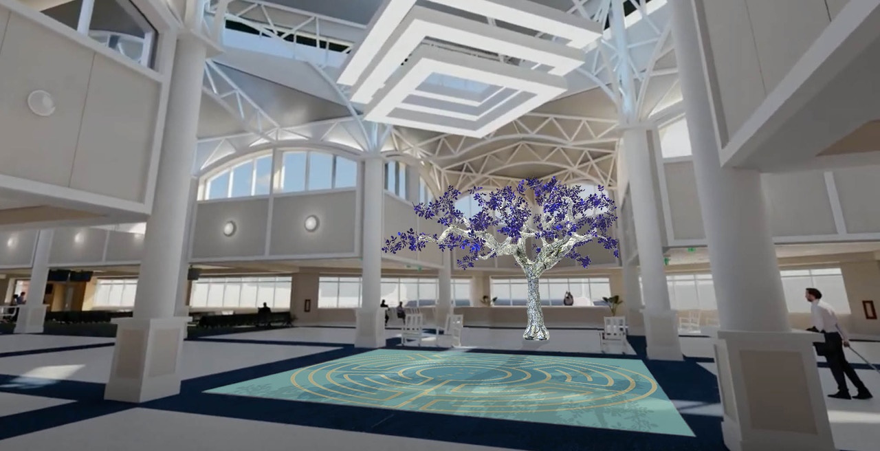 “I really love the idea that a labyrinth can invite people to transform this space in the airport into a little park for kids or a meditative space in the midst of a traditionally busy transitional space,” she explained. “I love to imagine that this labyrinth will give some weary or anxious travelers a little bit of peace and fun.”