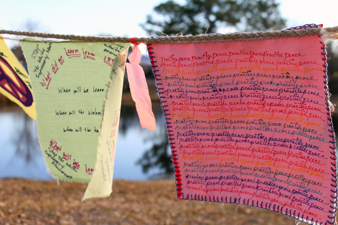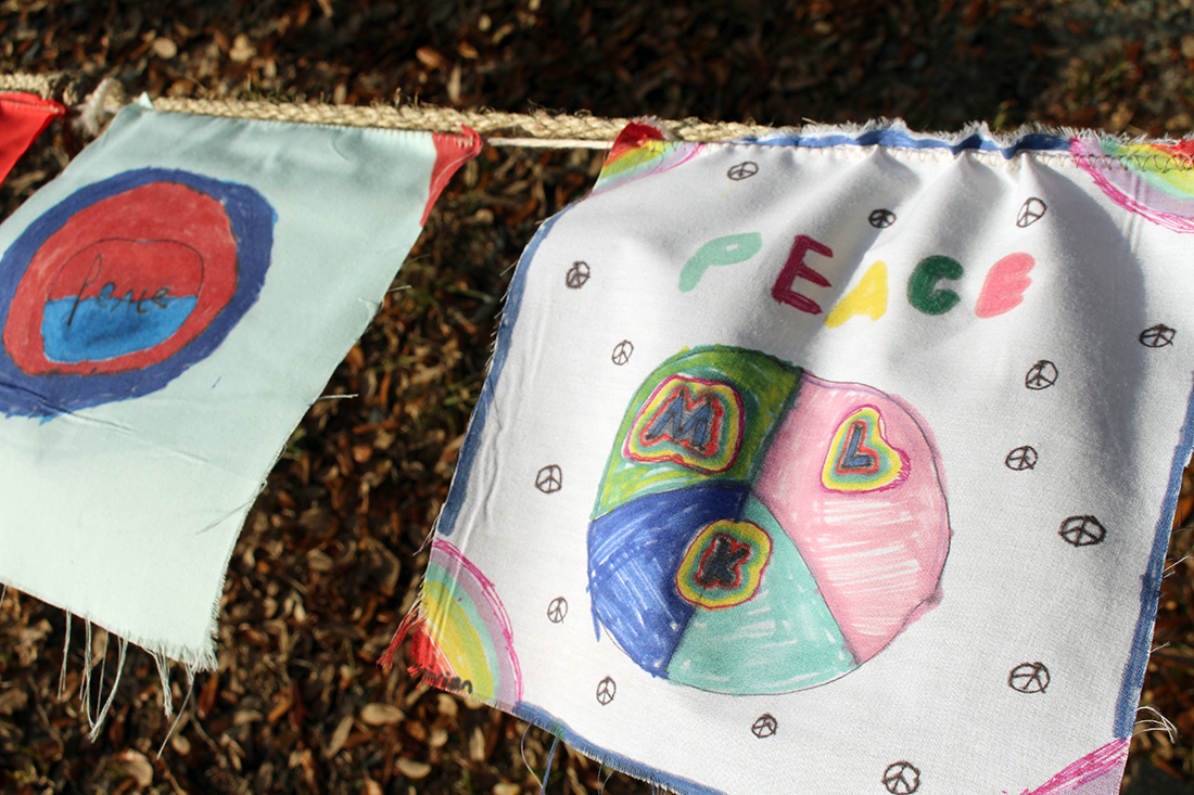 “Together these peace flags become a beautiful chorus for equity, justice, kindness, peace, and equality,” Wilson said. “When you come see them, you’ll see the truly thoughtful and heartfelt dreams for our city, our county, and our nation that our participants expressed.”