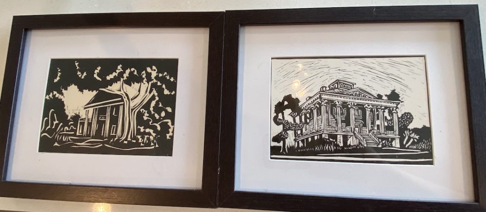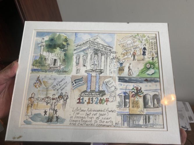Hand-drawn scenes of Wilmington are framed, one showing off the historic Carolina Apartments and fountain at 5th Avenue and Market Street. They would in turn become Howell’s Christmas cards.
