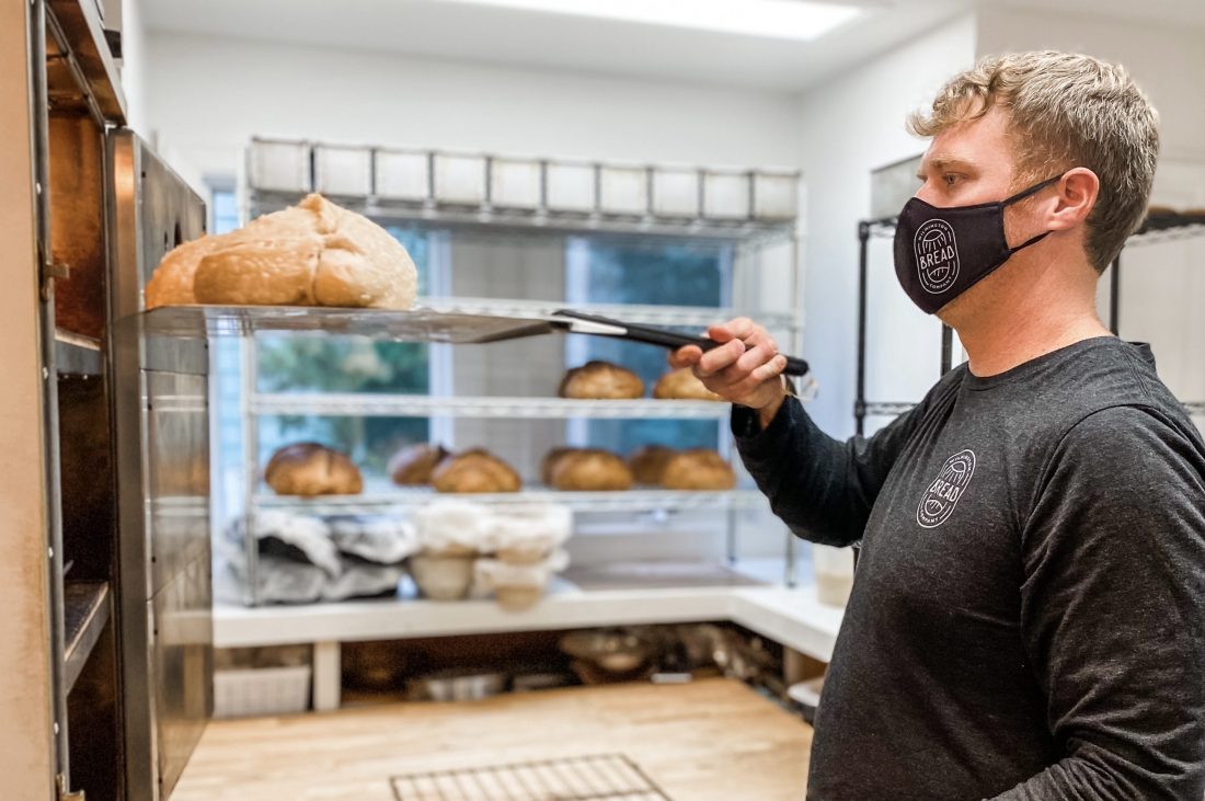 This was summer 2019. Shortly after, fans began placing orders and coming for the freshly kneaded loaves at Connor’s home. He operated Wilmington Bread Company as a cottage bakery, placing a bread locker on the porch where the preorders awaited customers.