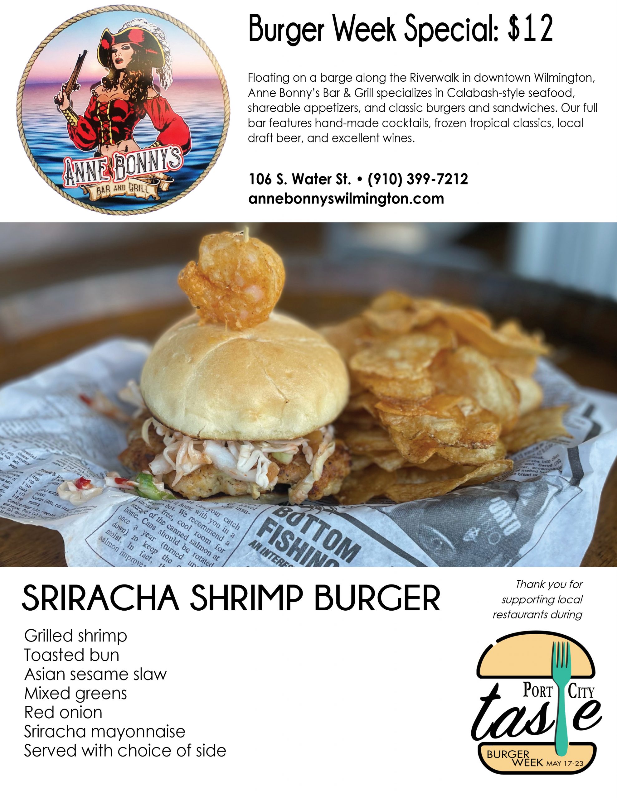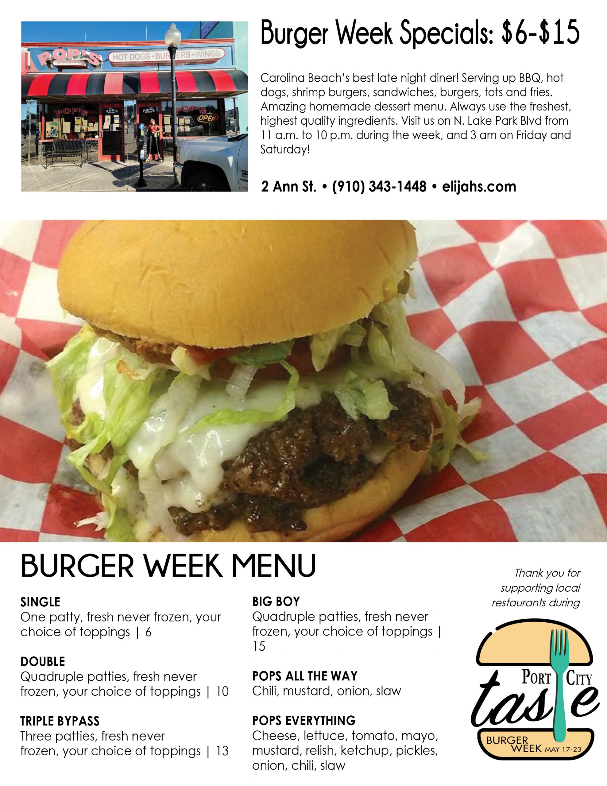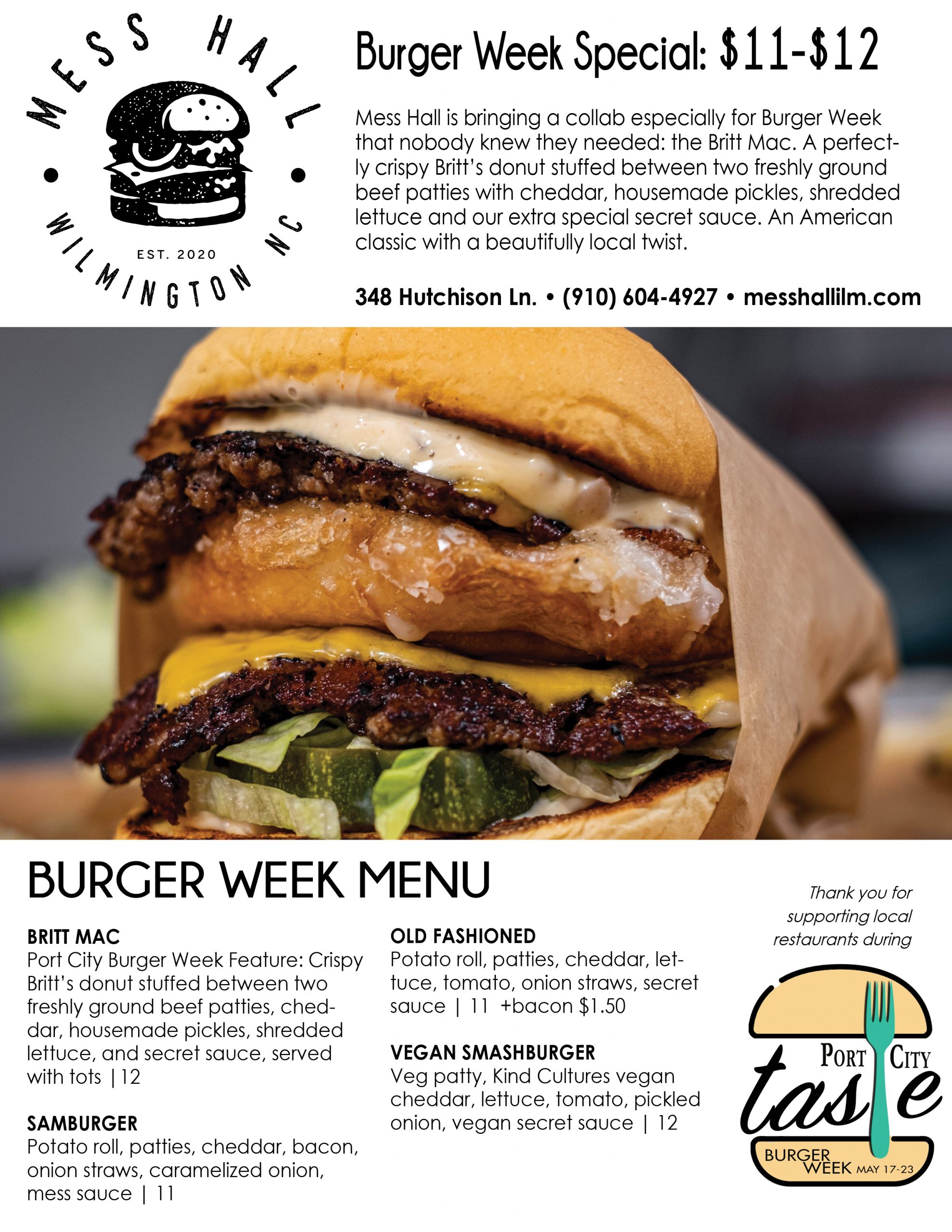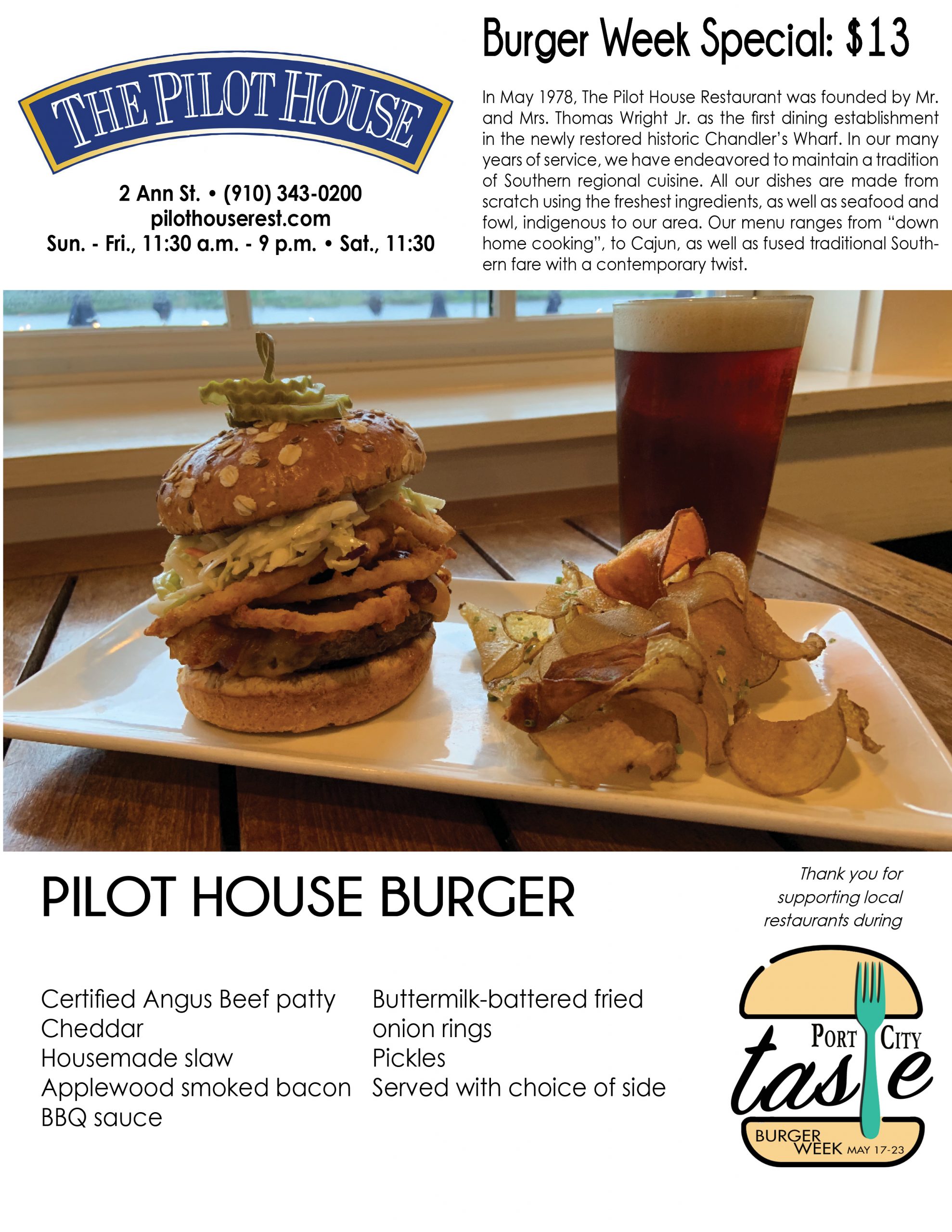 Interested diners can check out most menus offered during Burger Week below, and check in throughout the week for updates by clicking the Port City Taste tab on the Port City Daily website. At the end of each menu featured under the Port City Taste tab, readers can choose to print, download or email it to friends to plan their week of eats.