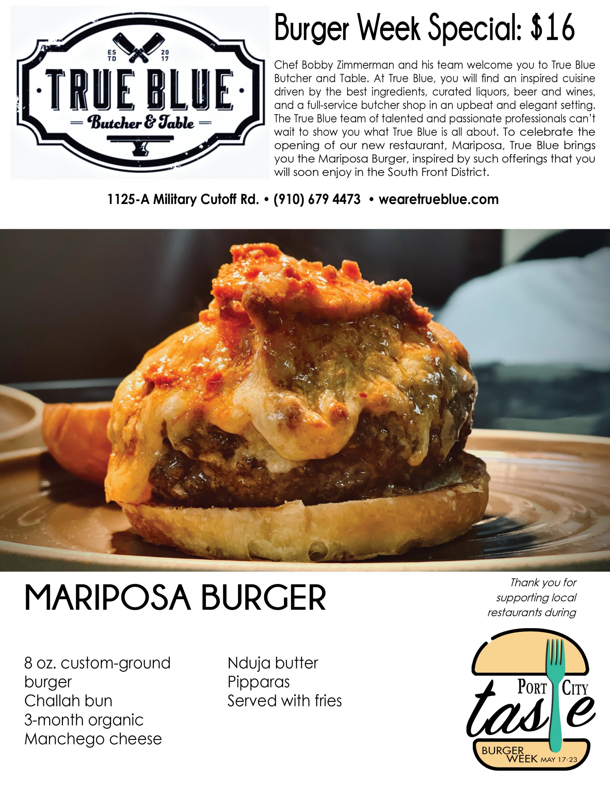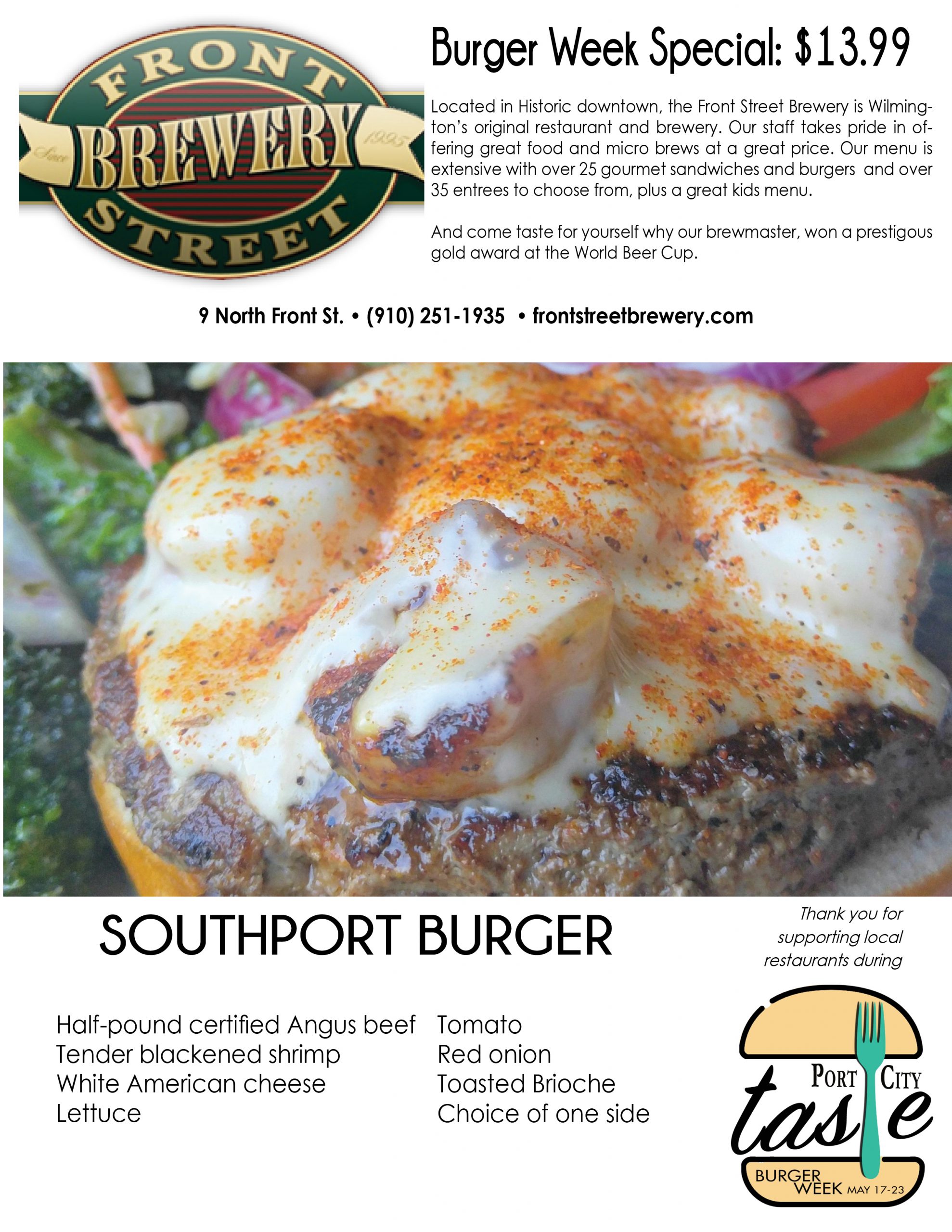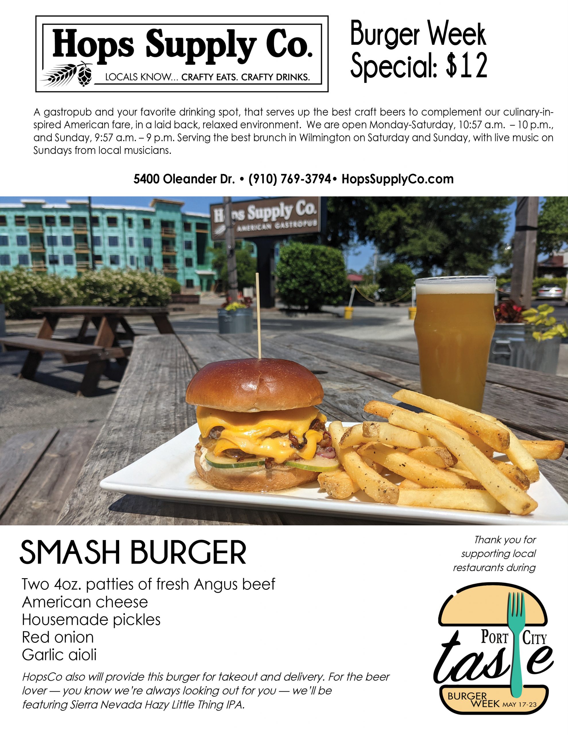 Port City Taste is celebrating it in all its flavors and styles across the Cape Fear this week, with the inaugural Burger Week. A Port City Daily event, it kicks off Monday, May 17, and ends Sunday, May 23, providing seven days for diners to eat their way through upward of 30 participating restaurants in southeastern N.C. Burgers will be served at eateries from north to south Wilmington, Carolina to Wrightsville beaches, midtown to downtown to Leland.