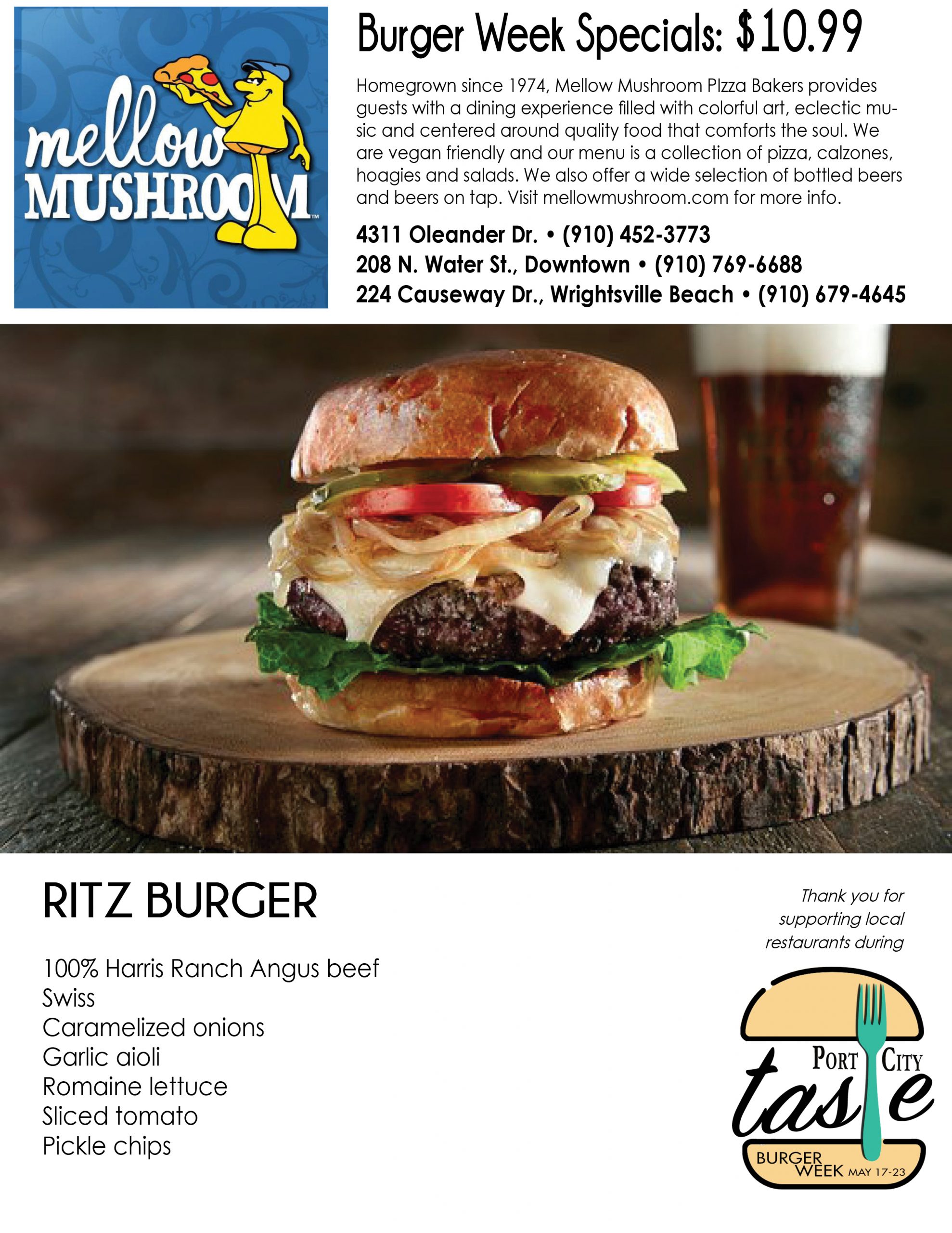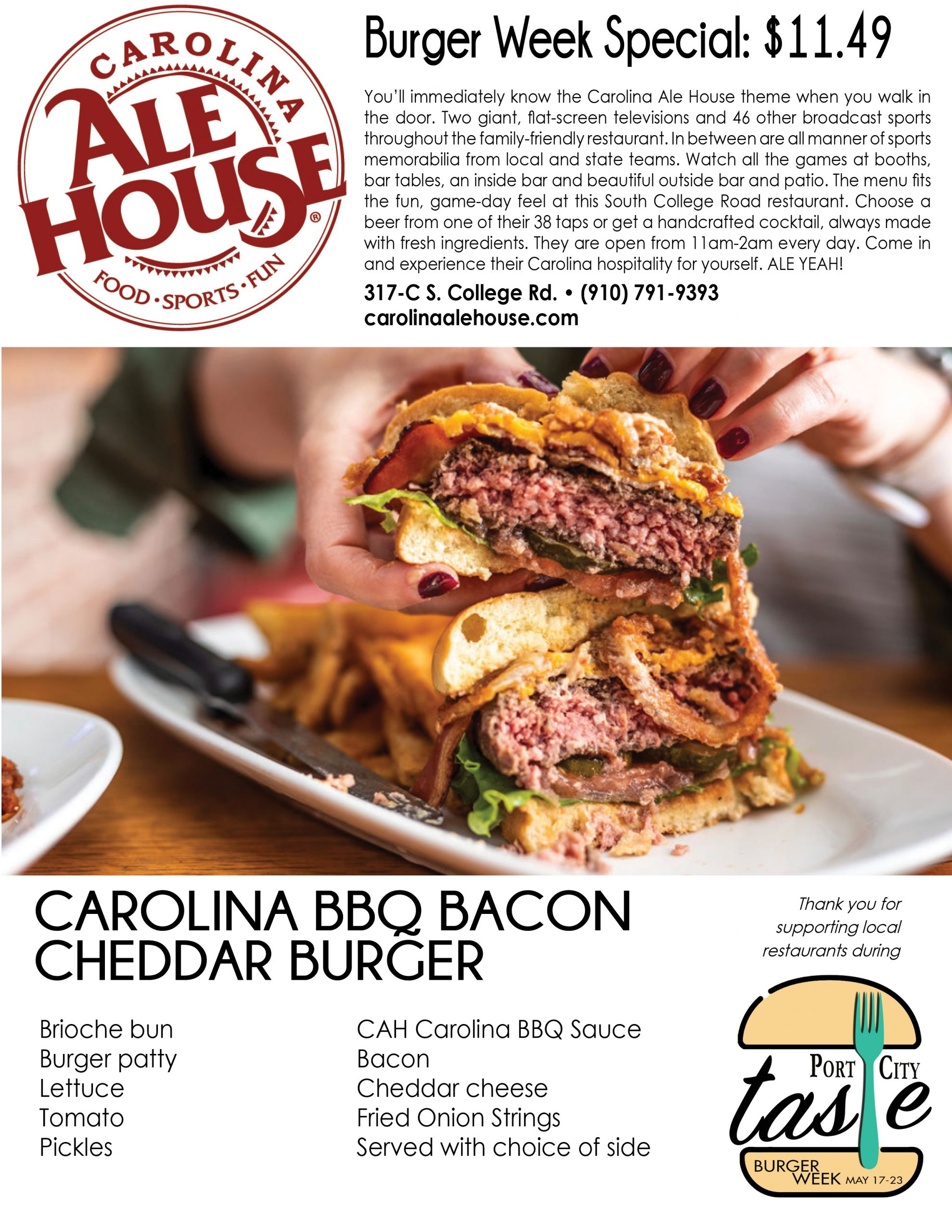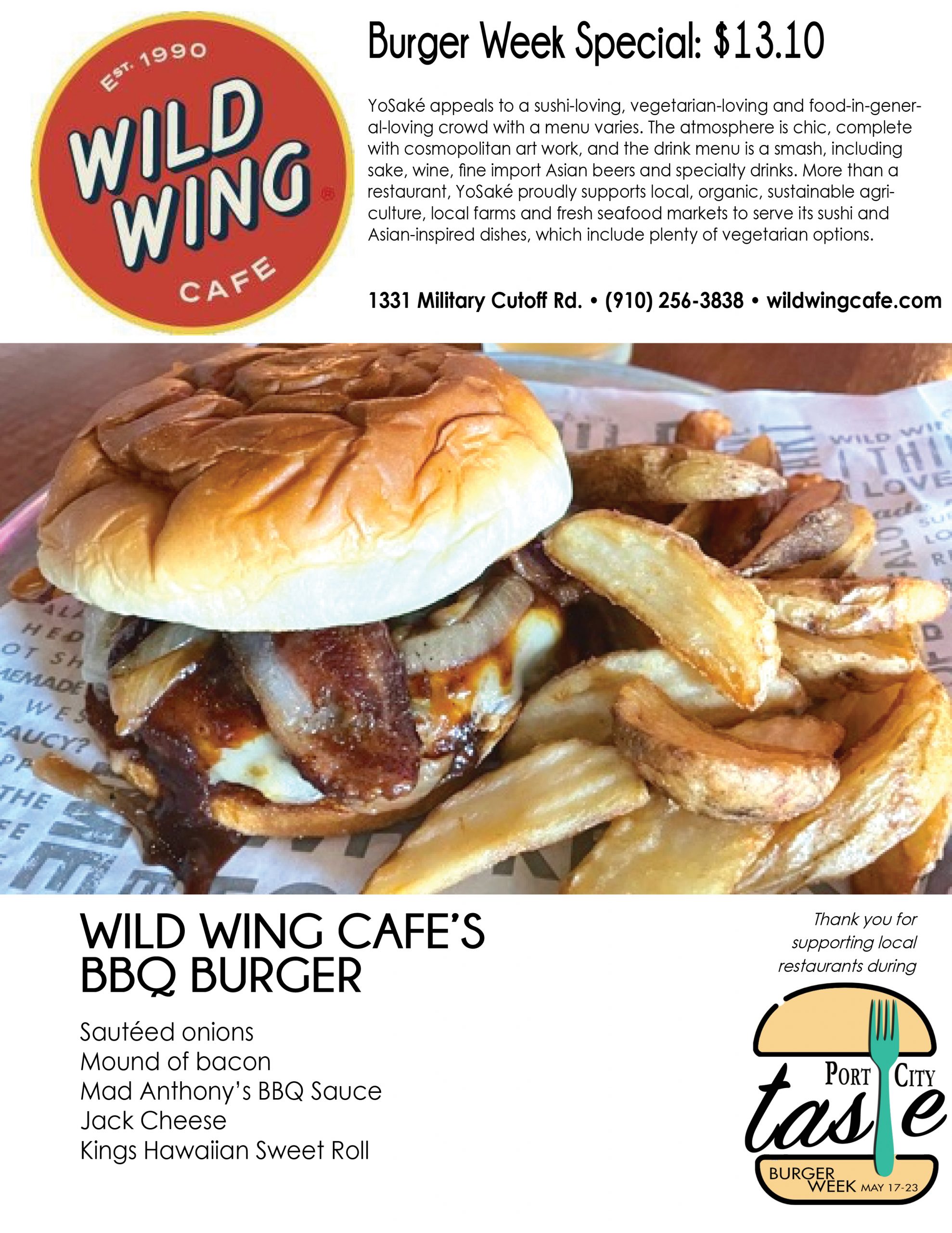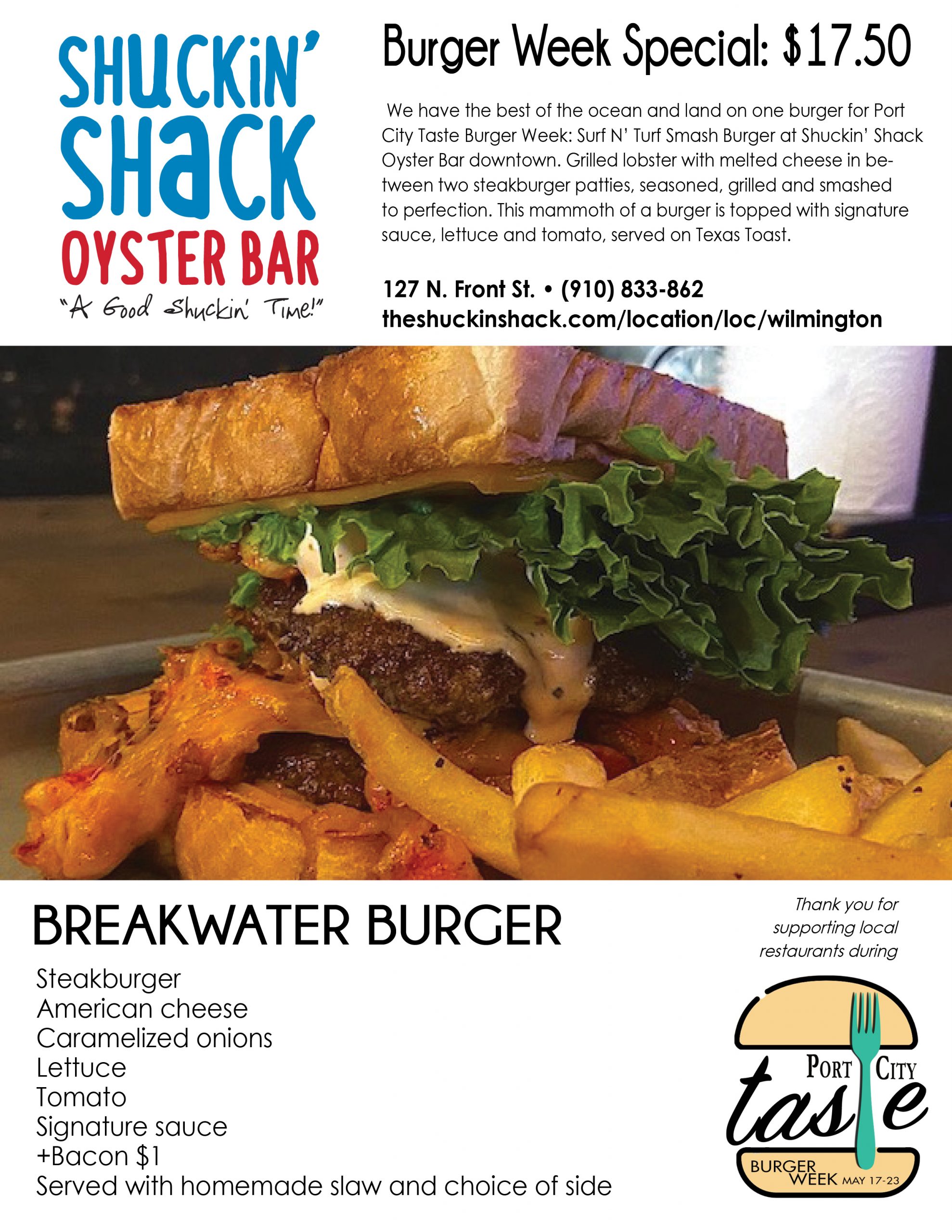 Port City Taste is celebrating it in all its flavors and styles across the Cape Fear this week, with the inaugural Burger Week. A Port City Daily event, it kicks off Monday, May 17, and ends Sunday, May 23, providing seven days for diners to eat their way through upward of 30 participating restaurants in southeastern N.C. Burgers will be served at eateries from north to south Wilmington, Carolina to Wrightsville beaches, midtown to downtown to Leland.