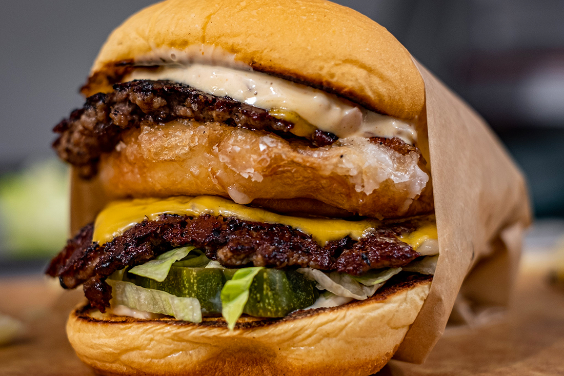“Two quarter-pound patties, double bacon, American cheese, shredded lettuce, tomato, pickled onion — man, it’s just what burgers should be,” Smith said.