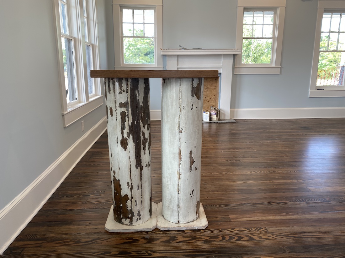 Yet, they used the old columns to construct the host stand in the front dining room.