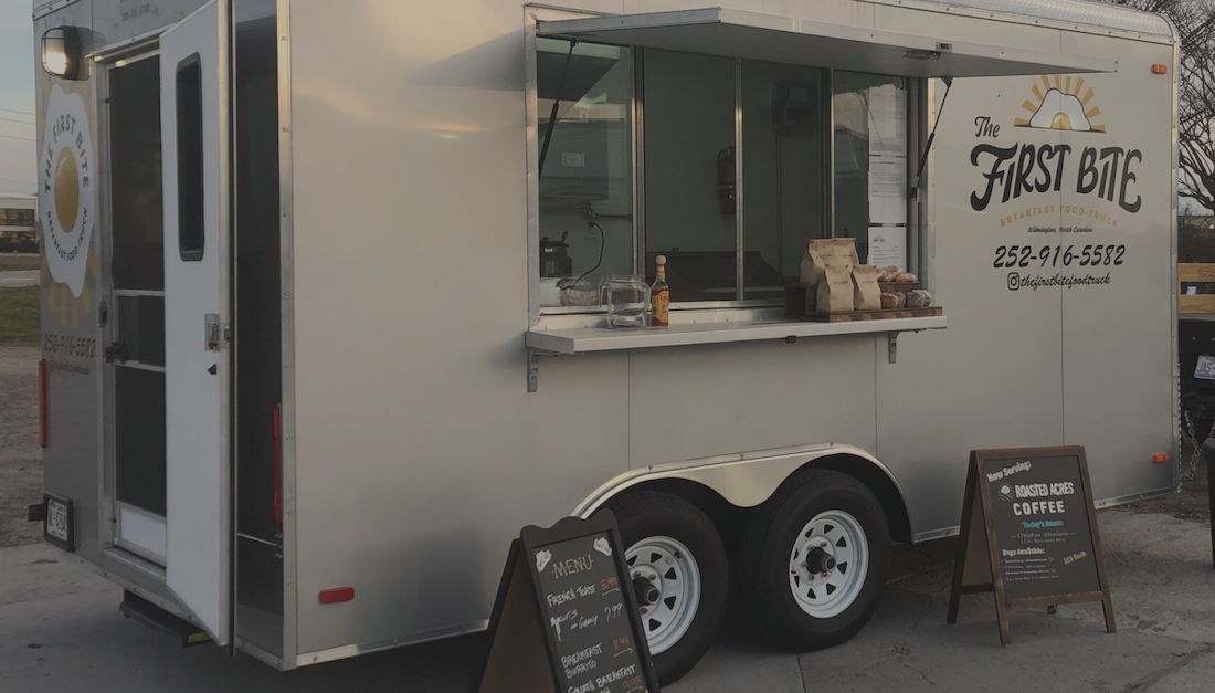 The First Bite is a breakfast food truck. We offer breakfast burritos, sandwiches, as well as some other breakfast items. We serve breakfast in the morning, noon, and evenings.