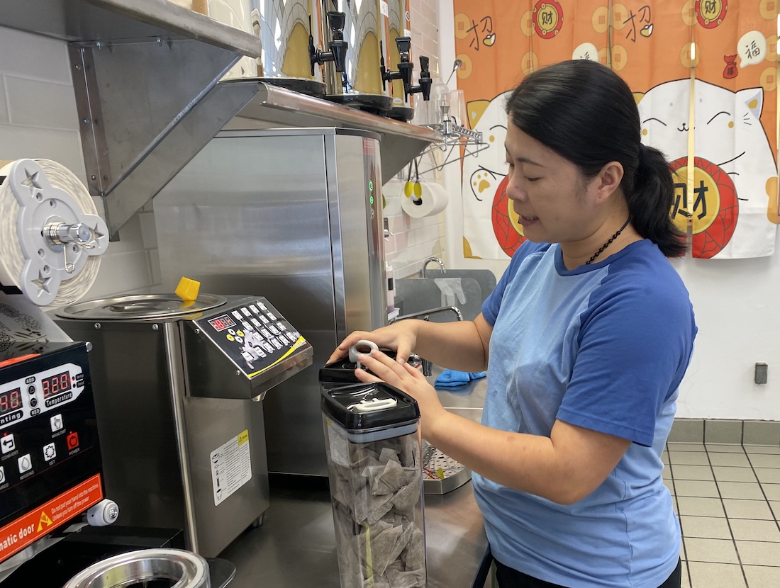 Four or five customers made their way in on Monday right before noon at The Boba Tea Factory. Gao was coming off a weekend of 115 customers a day, she said — so a slower morning gave her time to restock.