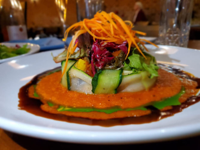 - Sea bass with root veg hash, shaved radish and winter citrus with caviar emulsion: $33