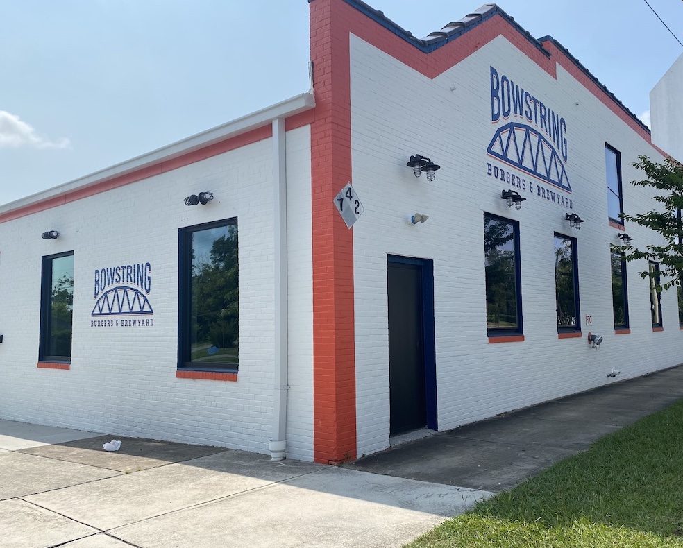 Bowstring Brewyard is a fitting name, too, as the building features bowstring trusses, a structural device used in industrial buildings, often done by hand. It matches its Raleigh counterpart, a former Gulf Oil facility.