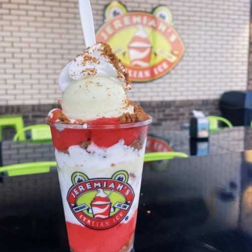 Jeremiah’s started in Florida in the mid-’90s and has grown to more than 120 stores nationwide. It serves 24 flavors of Italian ice made daily, six of which are specialty flavors. Carver said his 20 employees are making batches all day, every day, three-and-half-gallons at a time.