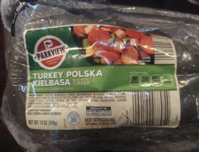Customers should dispose of or return any Parkview turkey kielbasa with sell-by dates of Apr. 24, 2024 or Apr. 27, 2024. The 13.7-ounce packages are marked with the recall bear establishment number P-3200.