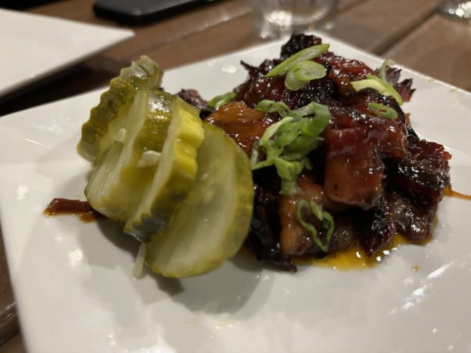 The burnt ends have replaced the brisket sandwich, though the restaurant’s beloved pulled pork sandwich and burger remain, the latter also topped with a new slather of flavor.