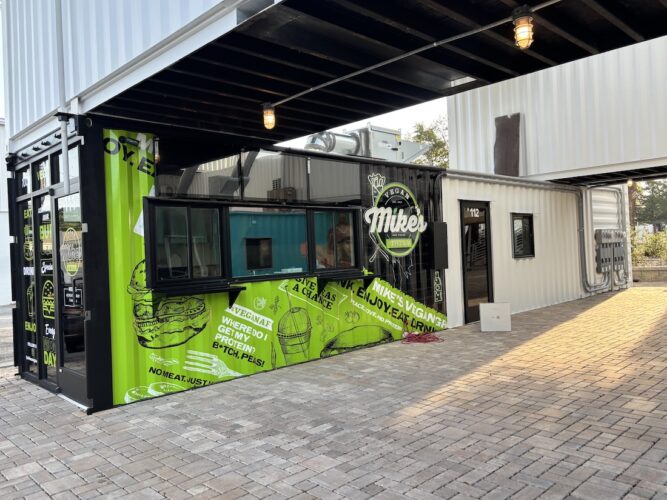 Once he learned about Cargo West, it seemed like a perfect spot for Mike’s fast, casual pace. Located in the Cargo District, on 15th Street between Castle and Queen streets, the outdoor food court consists of 12 8-foot-by-20-foot shipping containers, each housing different restaurants.