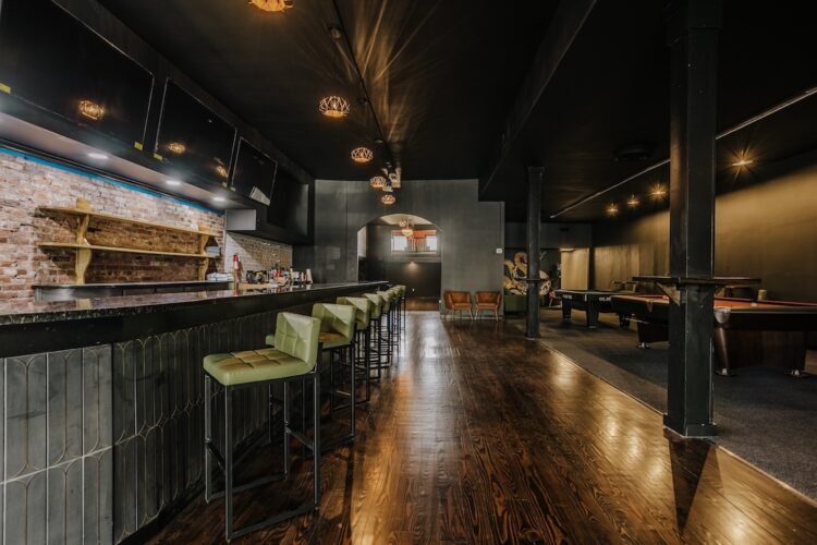 Elsewhere in the space are varied lounge areas, so patrons can mingle without hearing the clanking of the eight ball being sunk or the cheering of fans over a Sunday or Monday night football game. Sena said the goal was to give five areas of the bar their “own identities” and attract varied patrons.