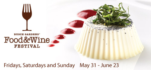 The Food and Wine Festival is occurring at Busch Gardens on Fridays, Saturdays, and Sundays from May 31 to June 23.