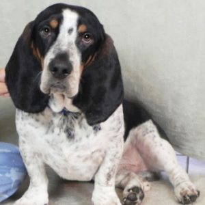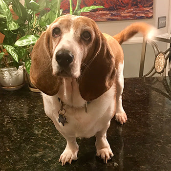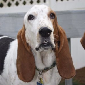This beautiful girl came to us about 6 years ago, as a foster. We fell in love with her instantly and knew we couldn’t let her go. Shortly after, Polly, another basset we fostered, was adopted into the family and the girls quickly became best friends. Dee Dee is a loyal, snuggle-loving sweetheart whose beautiful eyes will melt your heart. Calm and laid back, she is 9 years old and is in excellent health.