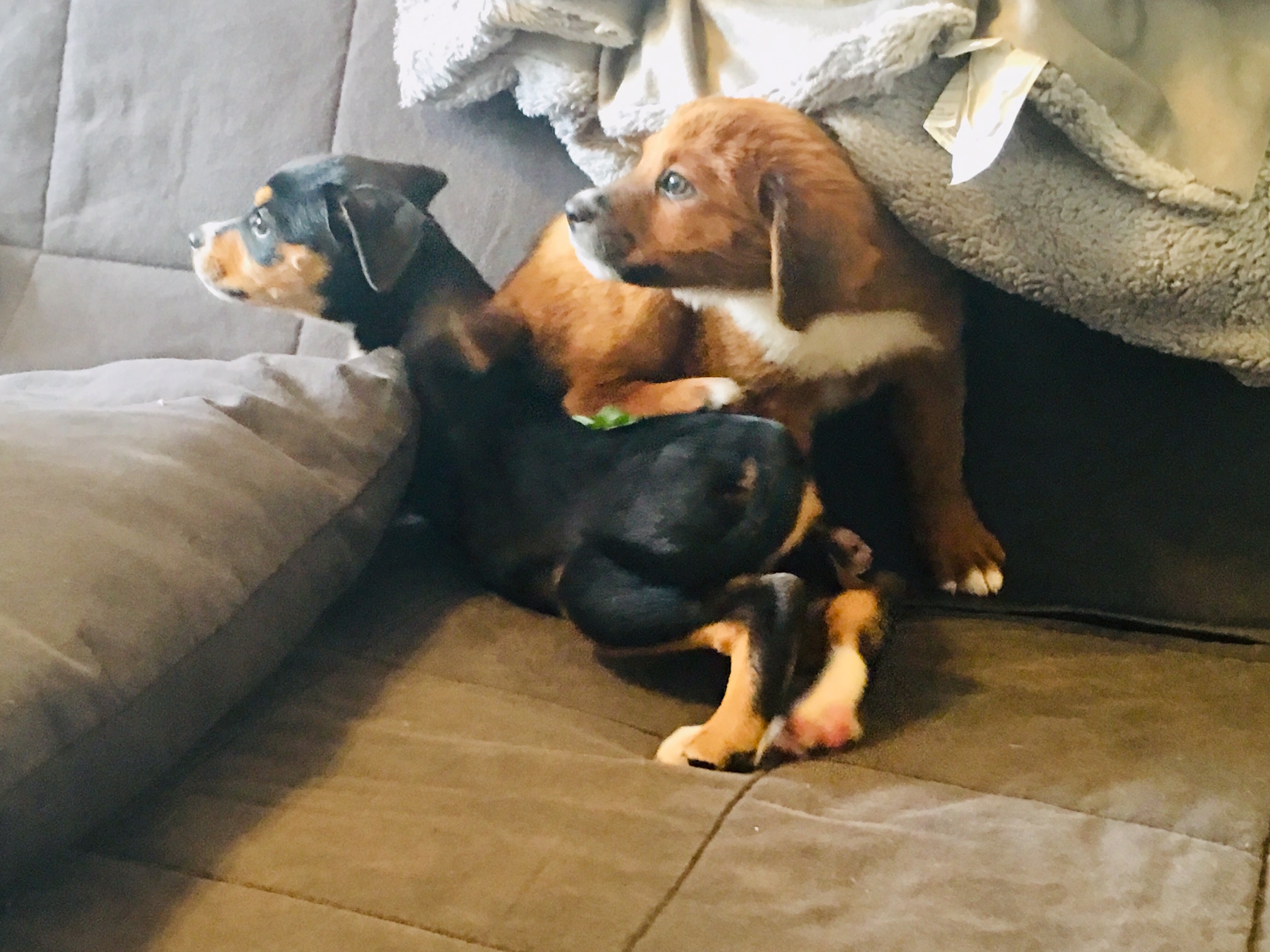 Curious and enthusiastic, Red and Lola’s favorite activities currently include tummy rubs and nap time.