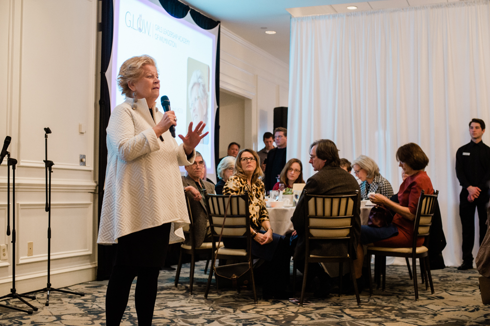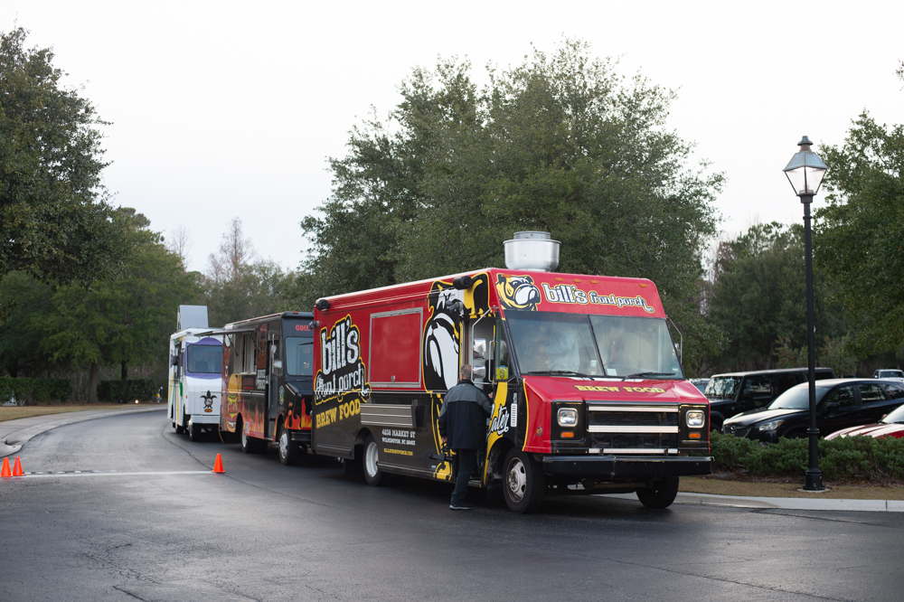 Six food trucks lined up outside the Country Club of Landfall on Friday morning to compete in the Food Truck Throw Down. (Port City Daily photo/Mark Darrough)From left to right, Molly and Brendan Curnyn of CheeseSmith and Kevin and Erin Langston of WilmyWoodie. (Port City Daily photo/Mark Darrough)Attendants of GLOW’s breakfast fundraiser at the Country Club of Landfall on Friday morning. (Port City Daily photo/Mark Darrough)Students of GLOW line up next to the food truck contestants before entering the banquet room. (Port City Daily photo/Mark Darrough)
