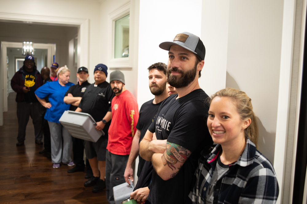 Kevin and Erin Langston of WilmyWoodie line up next to their competition before entering the banquet room. (Port City Daily photo/Mark Darrough)