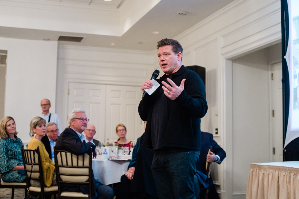 Food Network host Tyler Florence speaks to attendees of a GLOW Academy fundraiser before announcing the kickoff of the Food Truck Challenge. (Port City Daily photo/Mark Darrough)