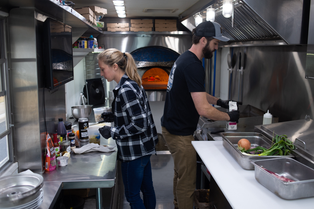 Chef Keith Rhodes of the Catch food truck gets ready to prepare his dish. (Port City Daily photo/Mark Darrough)Erin and Kevin Langston of WilmyWoodie get ready to prepare their dish for the competition. (Port City Daily photo/Mark Darrough)