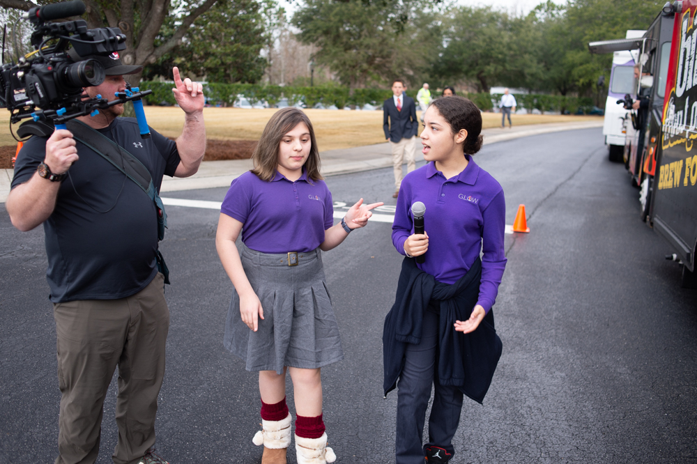 GLOW students are interviewed by WWAY TV. (Port City Daily photo/Mark Darrough)