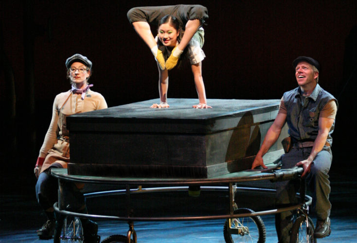 The performance is inspired by the artwork of Mexican muralist Diego Riviera, cartoonist Rube Goldberg’s work and Charlie Chaplin’s humor from the film “Modern Times.” The show blends jaw-dropping contortions with comedy and playful circus antics.
