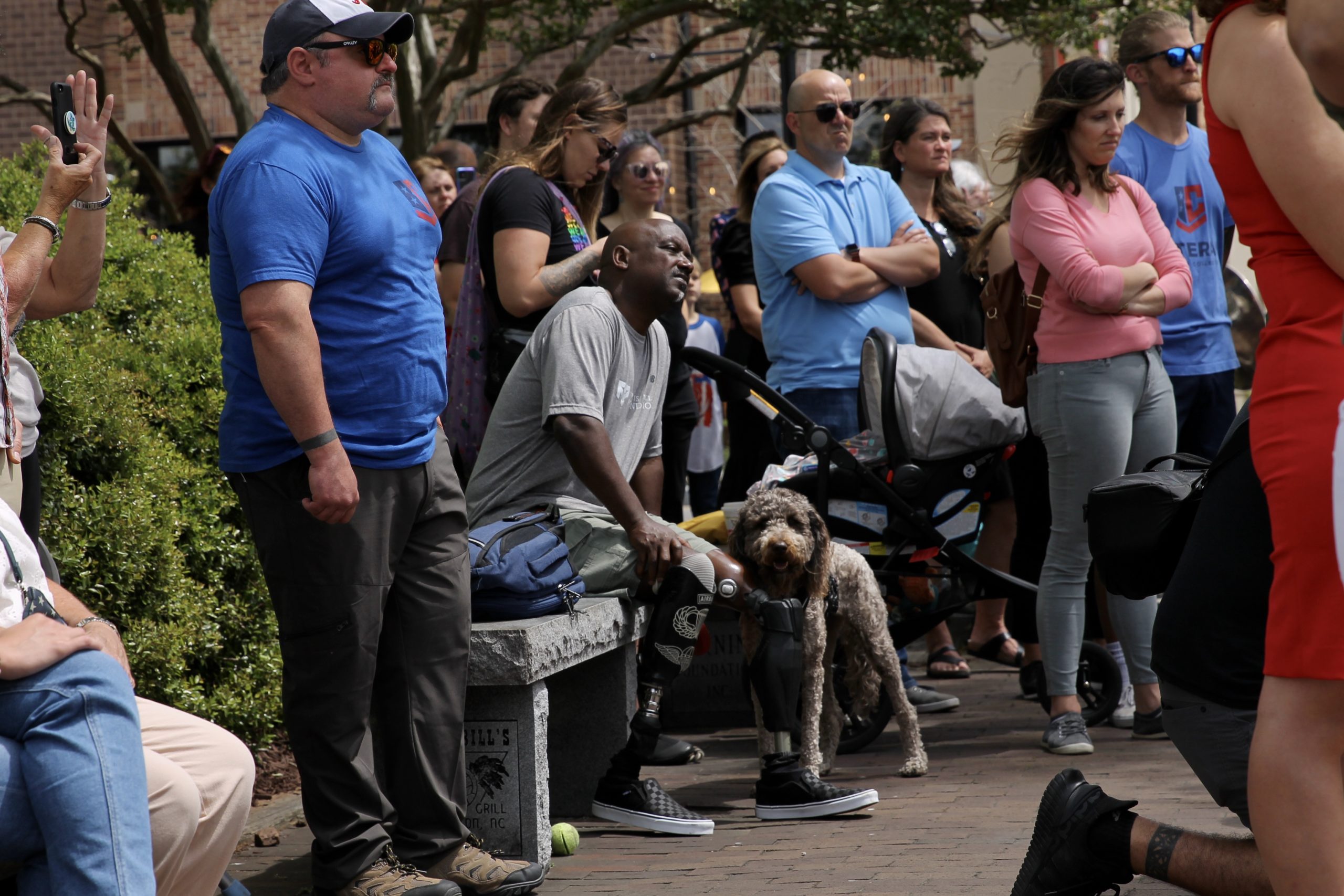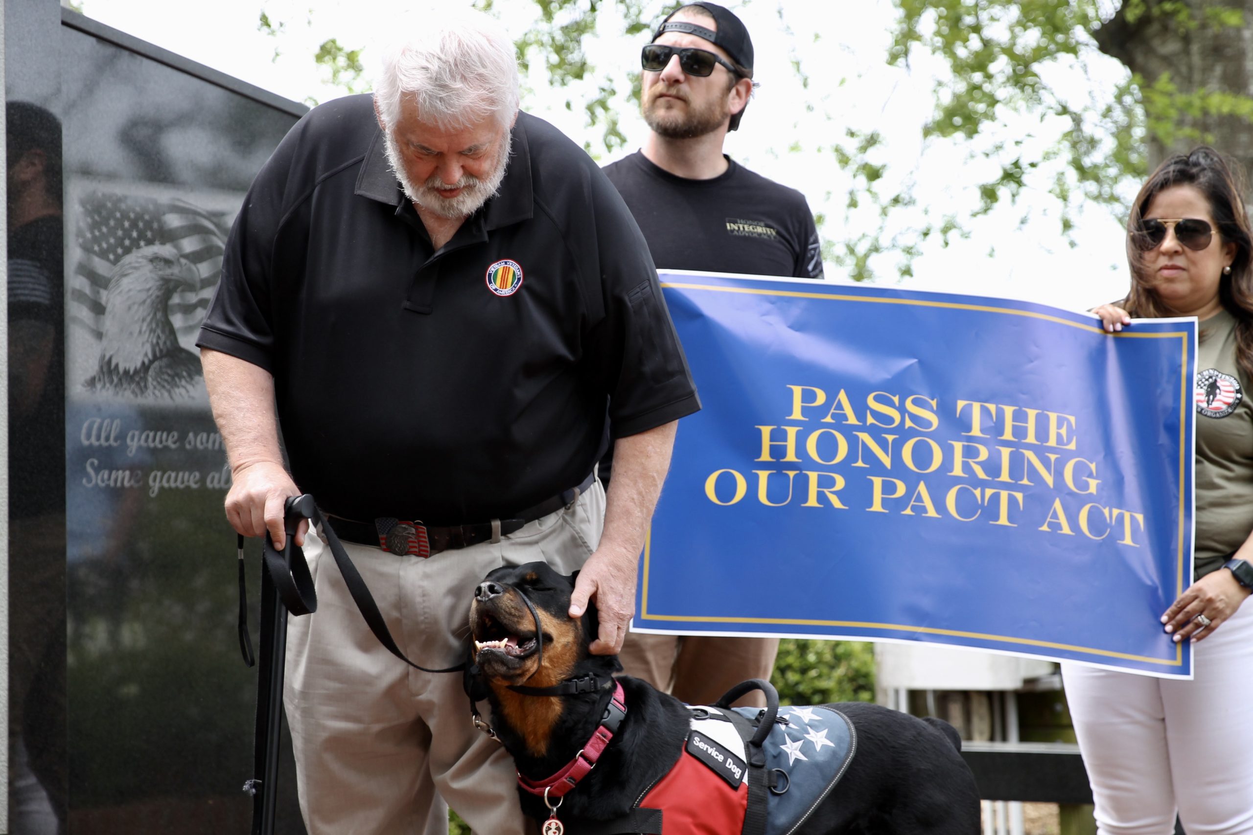 WILMINGTON — A crowd of veterans, loyal service canines and supporters who lost loved ones to health hardships linked to their overseas deployment gathered along the Wilmington waterfront Thursday. In front of the Veterans Memorial, they held signs and spoke through bullhorns in advocacy for a bill that would extend medical care and compensation to former soldiers now facing health repercussions for living, sleeping and fighting near toxic burn pits.