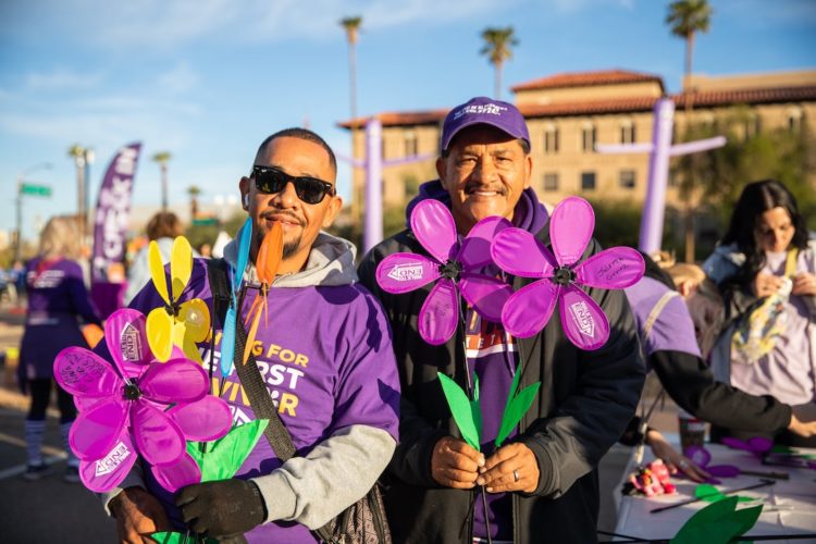 On walk day, participants honor those affected by the disease with the “Promise Garden” ceremony — a mission-focused experience that signifies solidarity in the fight against the disease. The colors of the “Promise Garden” flowers represent those who are connected to Alzheimer’s and personal reasons to end the disease.