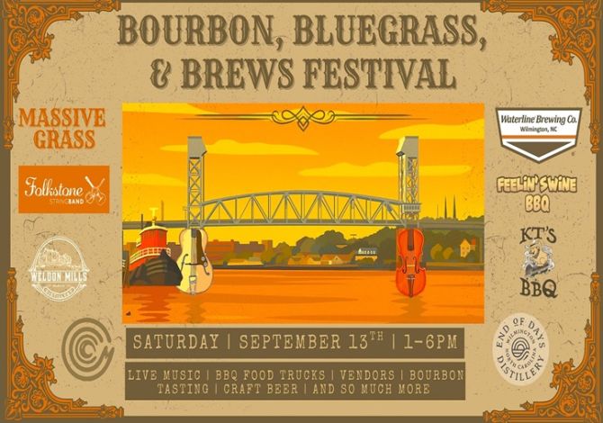 From 1 p.m. to 6 p.m. a party is taking place at the foot of the Cape Fear Memorial Bridge celebrating bourbon, beer and bluegrass.