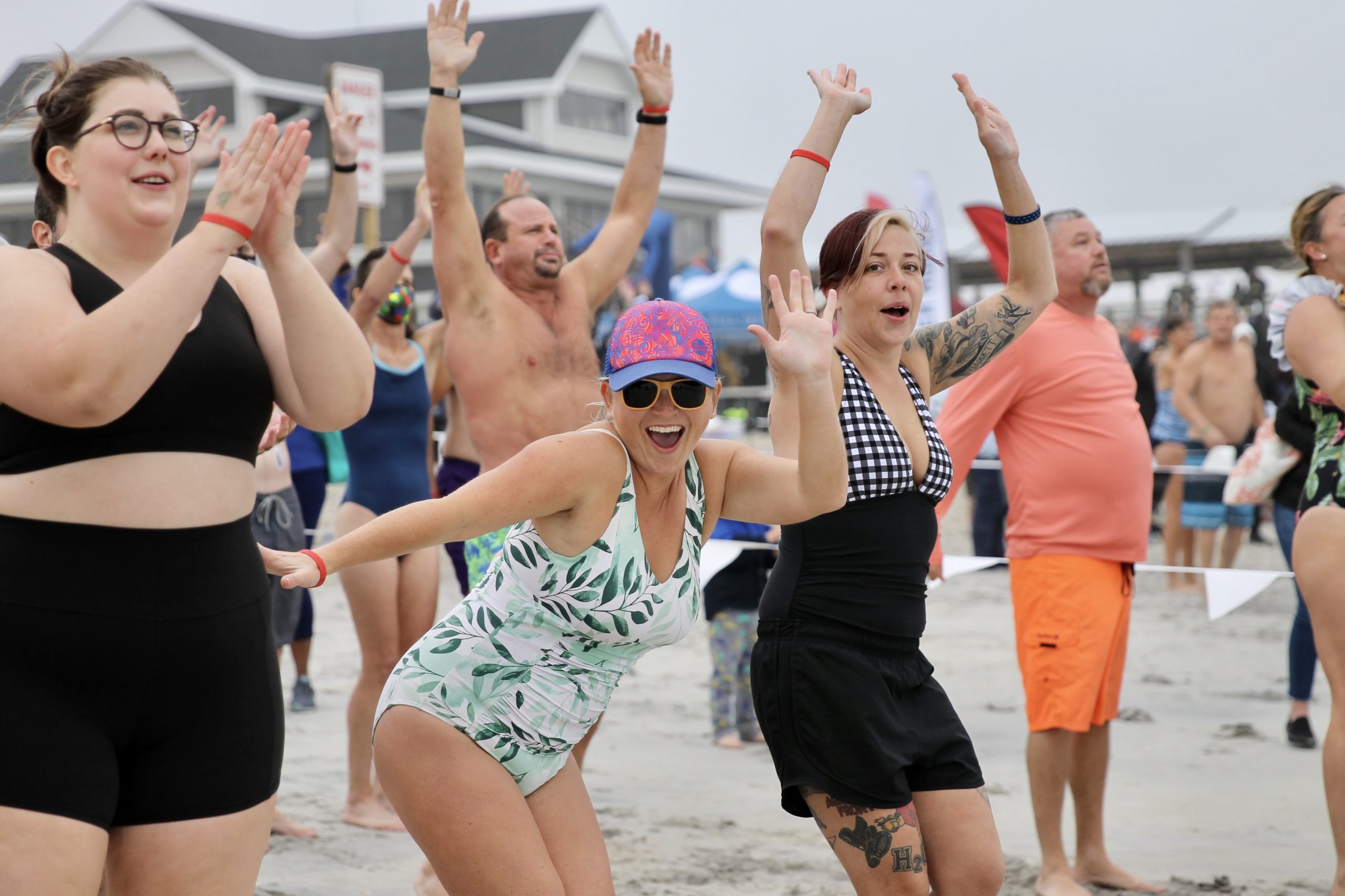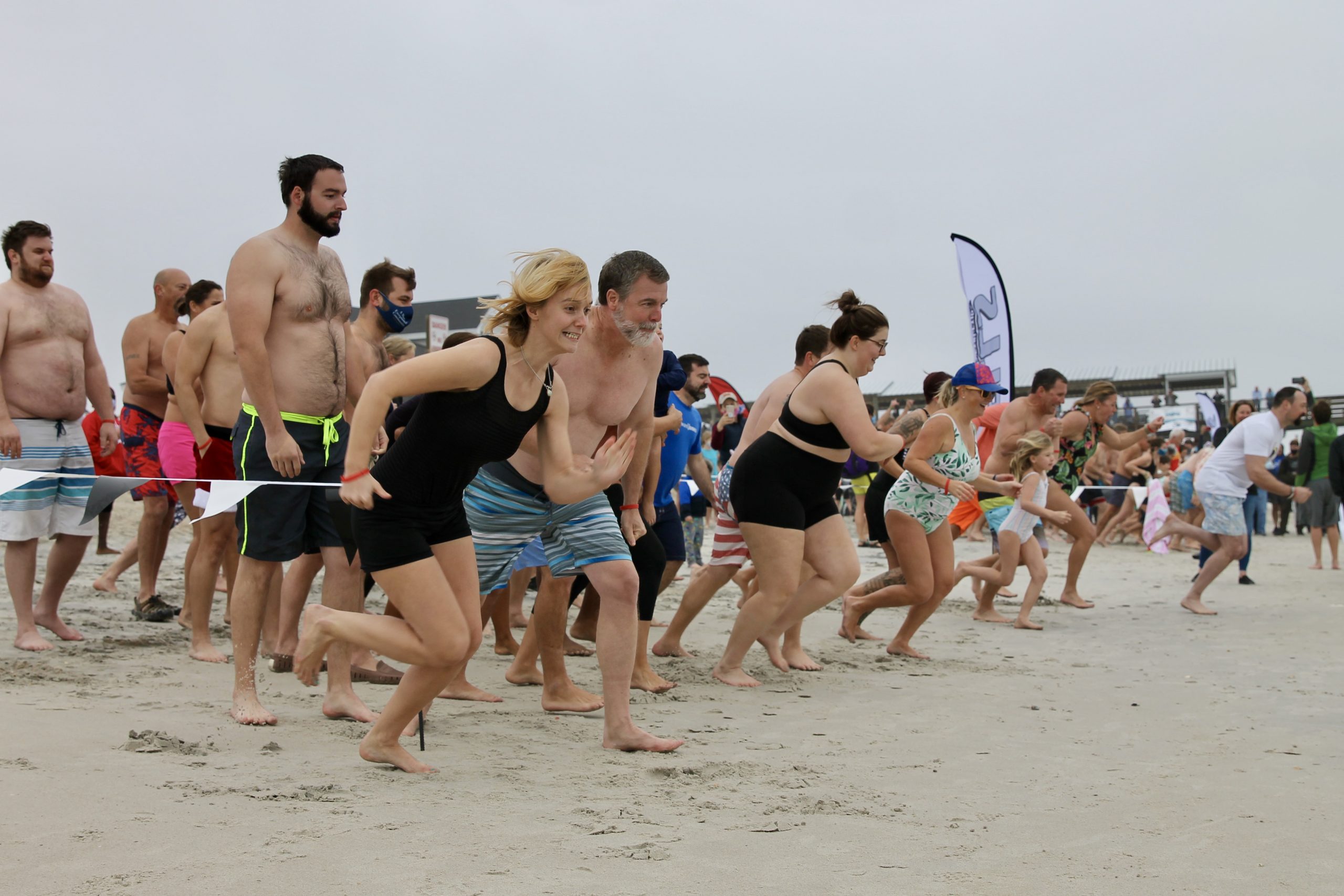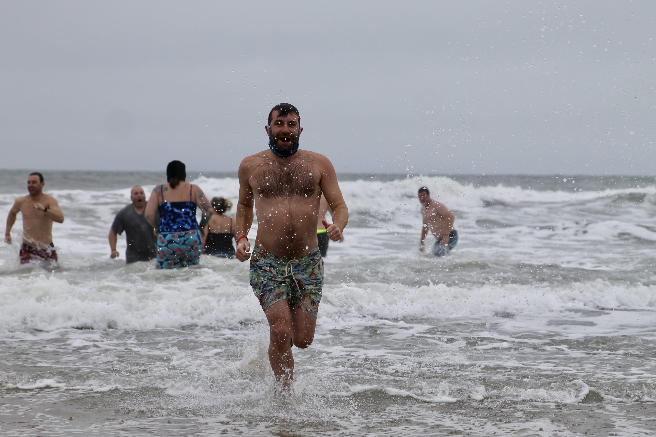 WRIGHTSVILLE BEACH – Hundreds of brave people kicked off 2021 with an icy dip into the Wrightsville Beach surf on this mid-50s New Year’s Day.