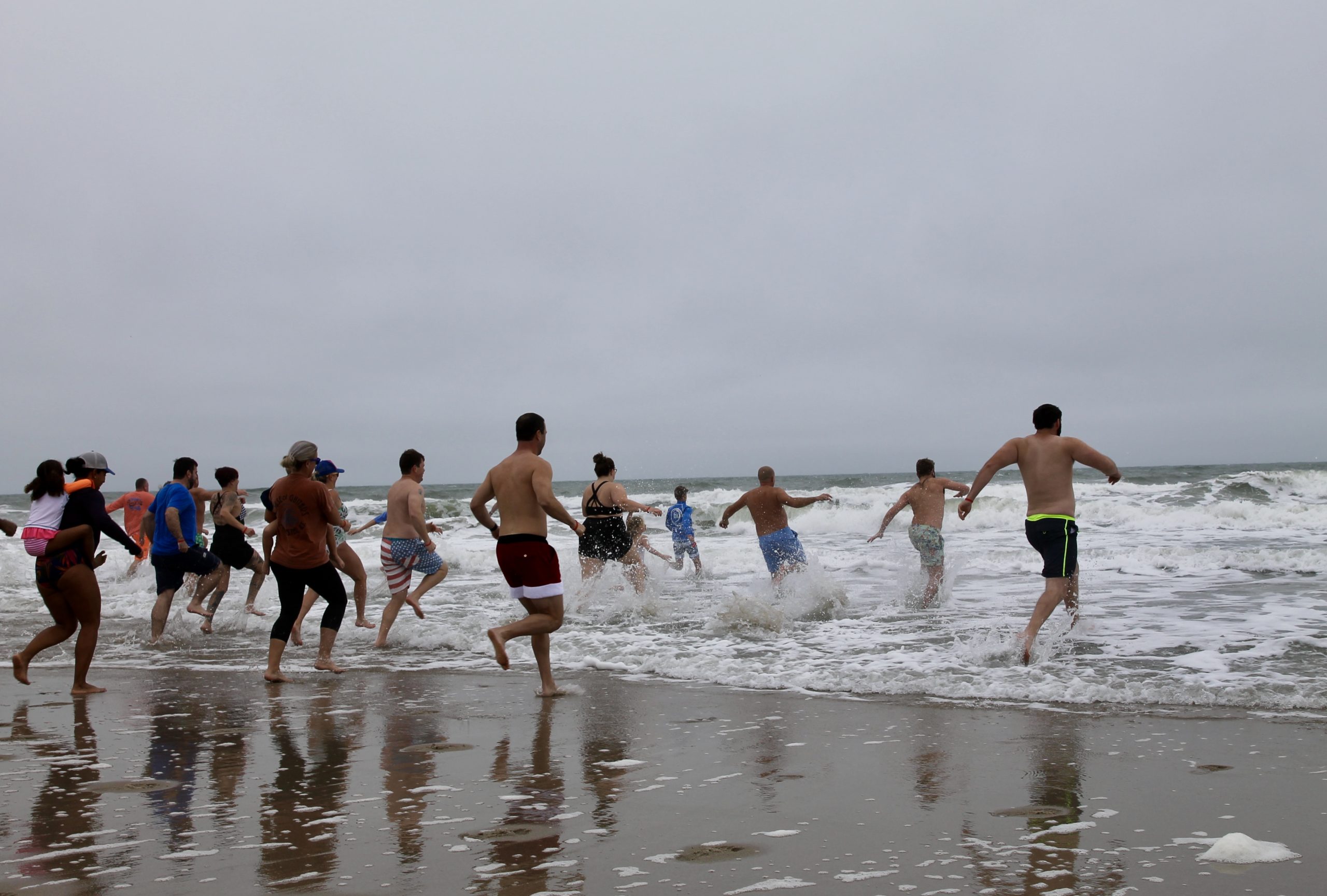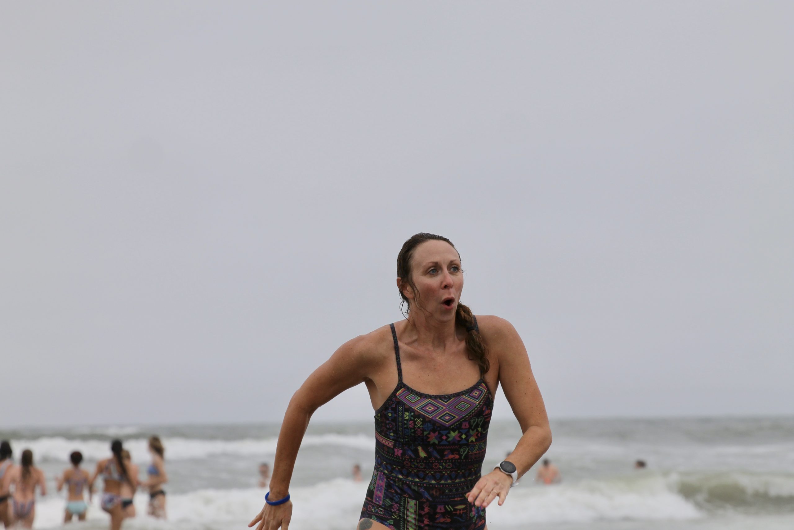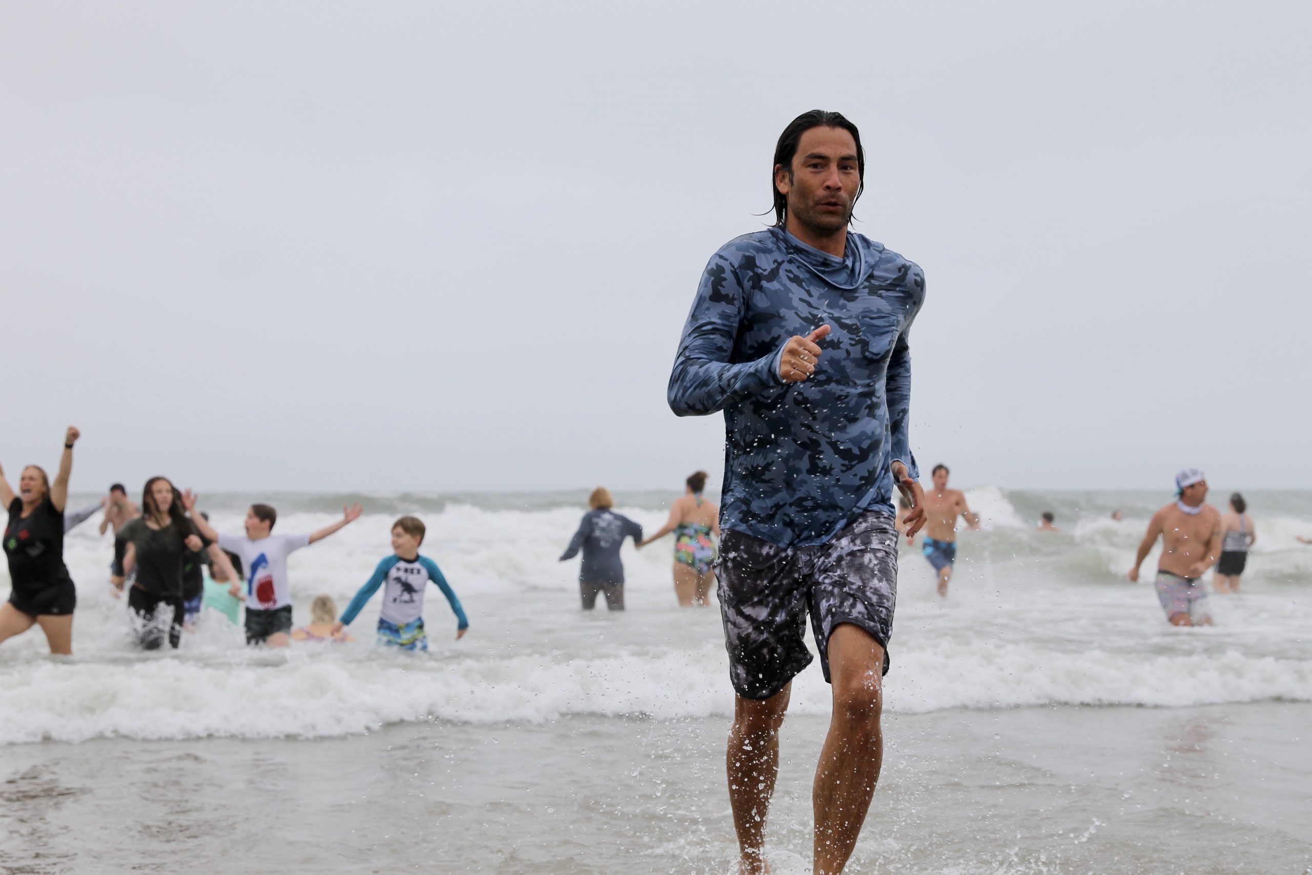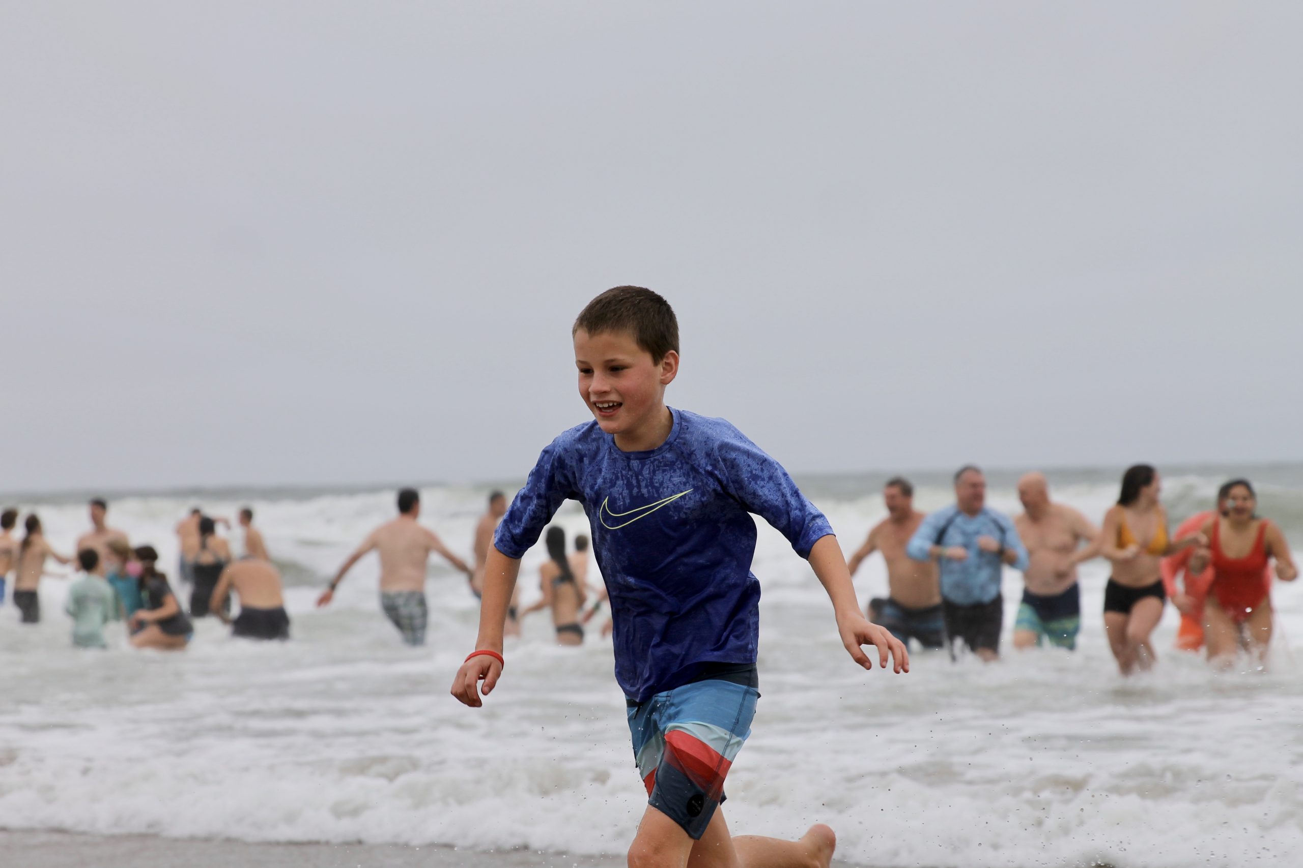 WRIGHTSVILLE BEACH – Hundreds of brave people kicked off 2021 with an icy dip into the Wrightsville Beach surf on this mid-50s New Year’s Day.