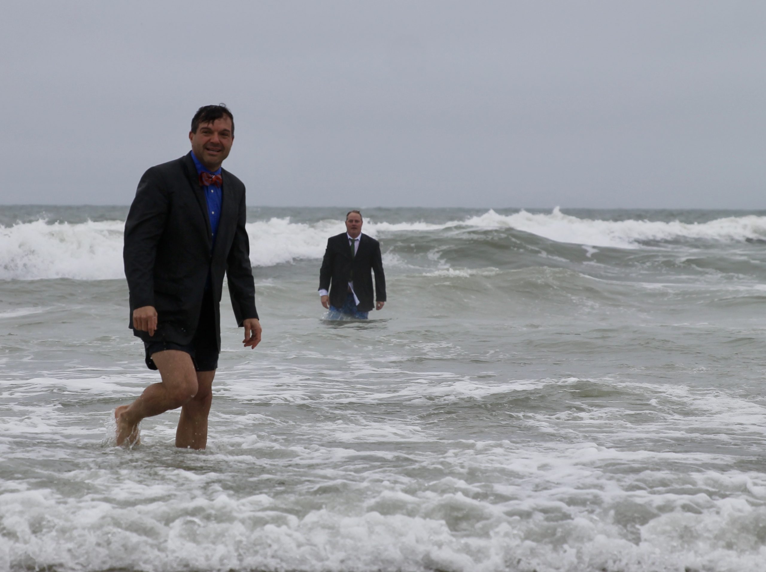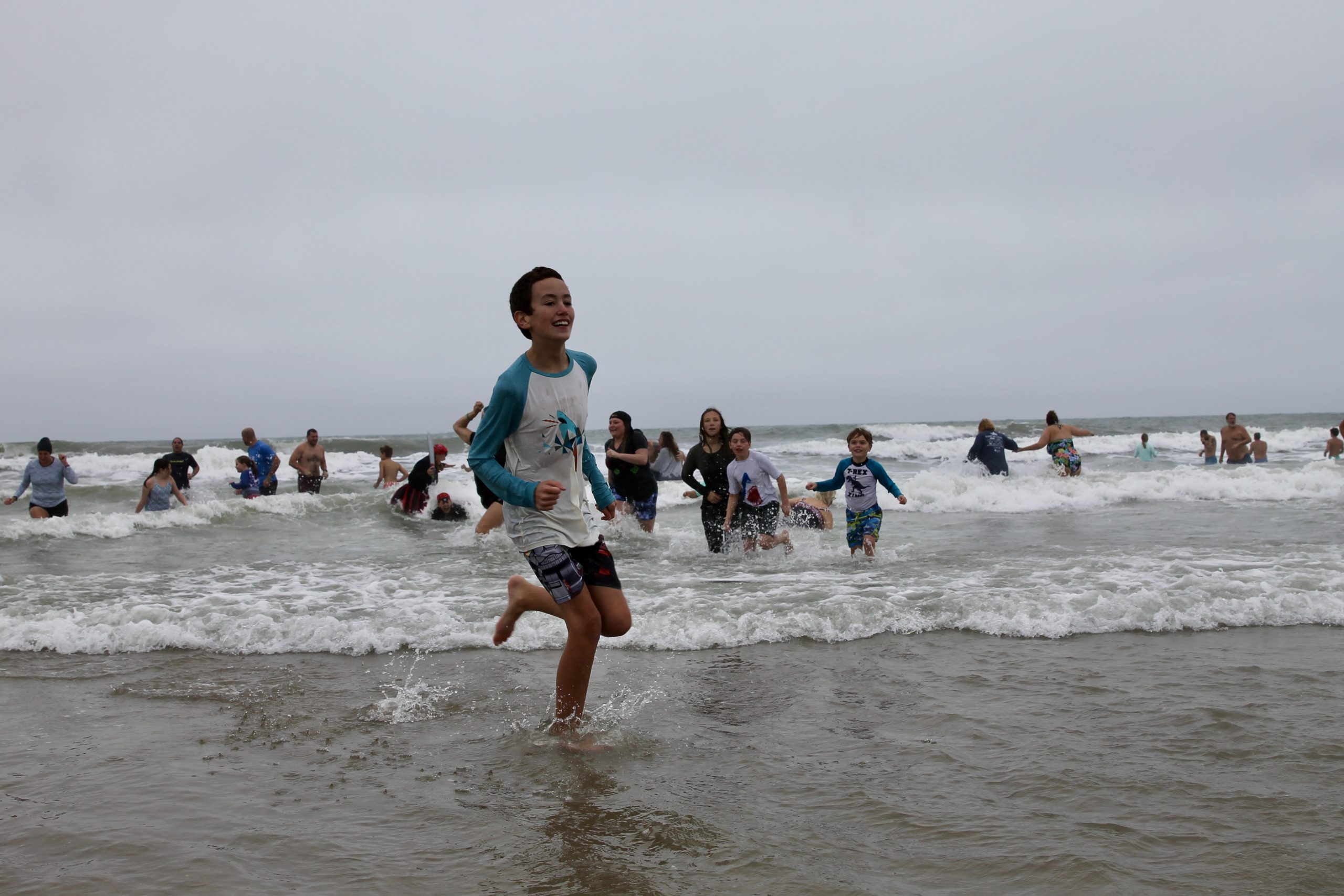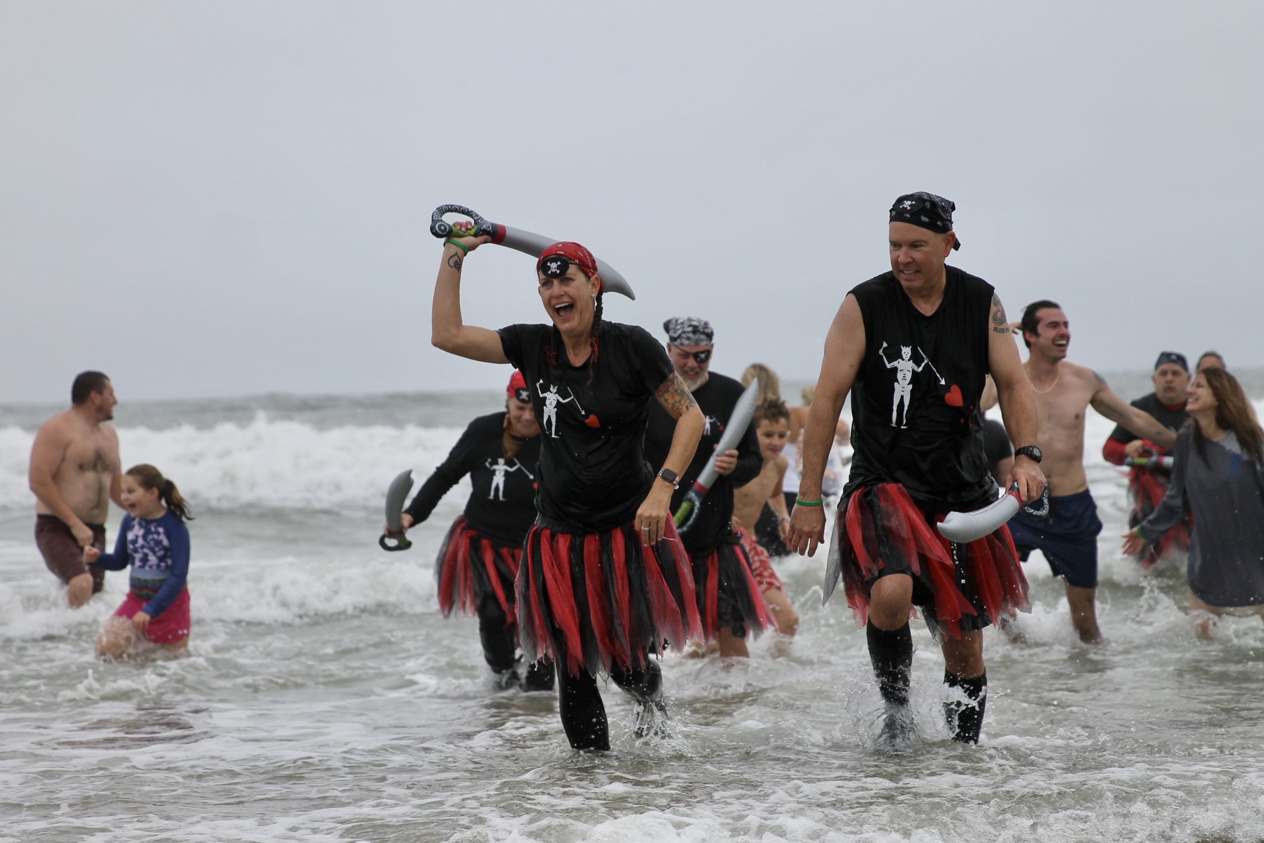 People could turn out to the in-person event at Crystal Pier Friday or participate virtually by snapping a photo of their plunge at any location.