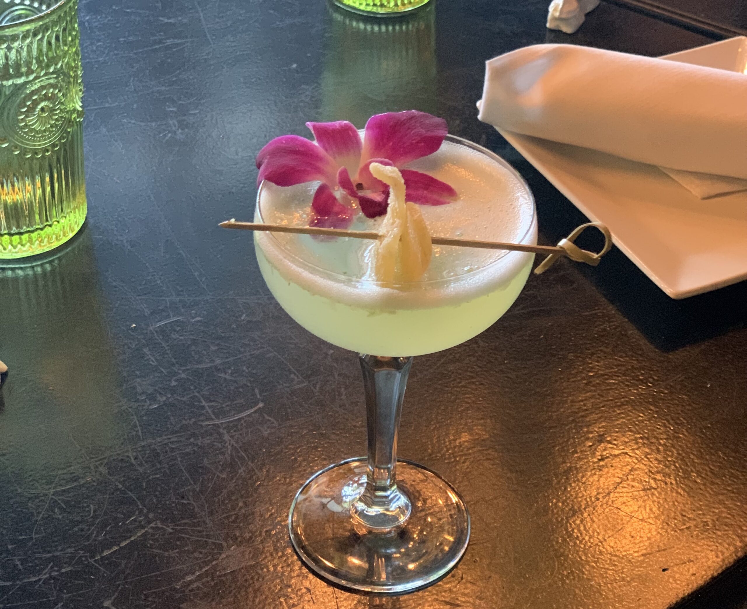 Available at Varnish: Witches Blood and Brown sugar Bourbon Butter Beer. Witches Blood: cherry schnapps, vodka, whiskey, cherry soda, $8. Brown sugar Bourbon Butter Beer: Bourbon, brown sugar, butterbeer, apple cider, $8. (Port City Daily/Courtesy Varnish)Available at Café Chinoi, Matahari Cocktail: Sake, Domaine Canton, cucumber, lime juice, and ginger beer, garnished with candied ginger, $11. (Port City Daily/Courtesy Café Chinois)