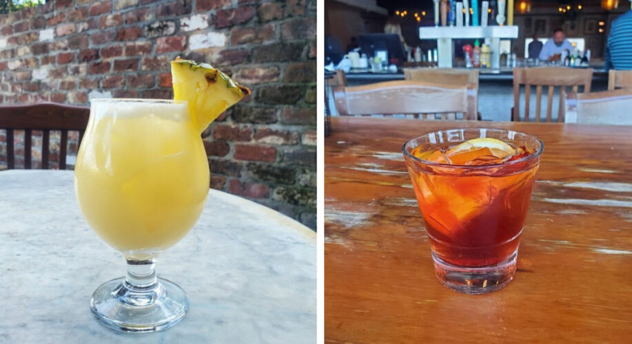 Available at The Green House, Twisted Vintage: Bourbon, fresh lemon juice, Barrel Rested maple syrup, Earl grey concentrate, $11. (Port City Daily/Courtesy The Green House)Available at The Green House, Rasasvada Ruby artemisia spirit restorative, seedlip garden 108, matcha, fresh lemon juice, Home Body Fields fig-cardamom shrub, aquafaba, $11. (Port City Daily/Courtesy The Green House)Available at Husk, Cape Fear Sunset: End of Days vodka, violet syrup, lemonade, cherry syrup, soda, sugar rim, $8. (Port City Daily/Courtesy Husk)Available at YoSake, Rising Sun: End of Day’s vodka, Joto Blue sake, fresh lemon, simple syrup, raspberry puree, $12. Pomegranate Ginger Mojito: Rum, pomegranate ginger syrup, muddled mint, fresh lemon and soda, $12. (Port City Daily/Courtesy YoSake)Available at Whiskey Tango Foxtrot, The Missing Link: Sugar-smoked glass, Bumbu rum, Bittermens tiki bitters, housemade Falernum syrup, garnished with brûlée-fried sweet plantain. (Port City Daily/Courtesy Whiskey Tango Foxtrot)Available at Whiskey Tango Foxtrot, Smoking Hot Coffee: Cedar-smoked coup glass, House-infused, fired-up tequila, hoodoo chicory liquor, Kahlúa coffee liquor, housemade Demerara syrup, Lucky Joe’s nitro espresso, egg whites, brûlée sugar top, garnished with Cuban coffee beans. (Port City Daily/Courtesy Whiskey Tango Foxtrot)Available at Ceviche’s, Gingered Pear and Old Fashioned Passion: Old Fashioned Passion: Brugal 1888 rum served over passionfruit infused cherries, muddled orange and a splash of simple syrup, garnished with orange peel and cherries, $12. Gingered pear: EOD vodka, Looza pear juice, fresh lemon juice, local honey, egg white and a dash of ginger bitters, garnished with candied pear, $12. (Port City Daily/Courtesy Ceviche’s)Available at Salt Fish, Asian Spud Blossom: End of Day’s gin, Domaine de Canton, Asian purple potato syrup, lemon juice, clover blossom garnish, $12. Shipwreck-a Rebecca: EOD rum, muddled cilantro, lime, red chilies, shaken then double strained, club soda, $12. (Port City Daily/Courtesy Salt Fish)Available at End of Days Distillery, Castle St. Mojito: End of Days rum, mint, seasonal fruit, and raw sugar, $12. (Port City Daily/Photo by Matthew Ray Photography)Available at End of Days Distillery, Rum Old Fashioned: End of Days rum, cherry syrup, and house bitters, $12. (Port City Daily/Photo by Matthew Ray Photography)