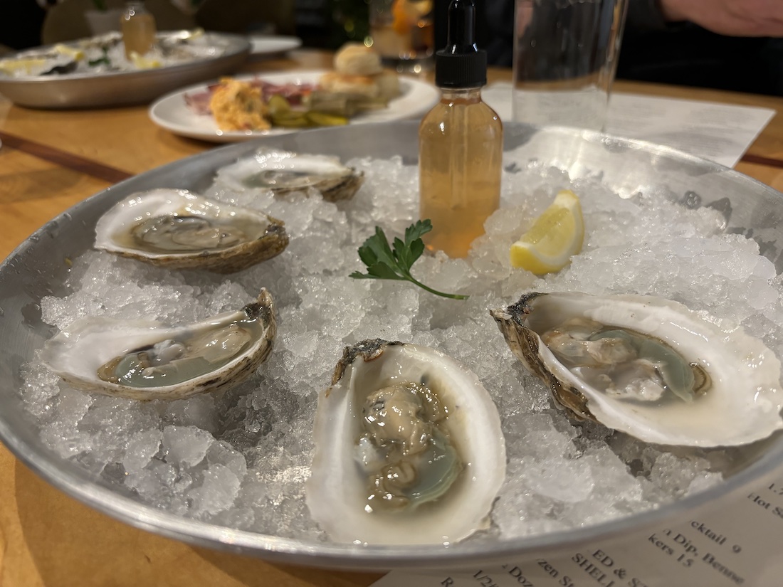 They’ve planted 300,000 this year and despite the setbacks, the return has been beyond expectations. Lucy Beas are briny and earthy, a balance of crisp and clean, due to their green gills — a rarity only found in a couple places worldwide, including France and North Carolina. The green hue of the oysters indicate diners are experiencing a delicacy.
