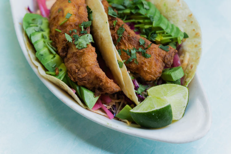 A choice of homemade corn or flour tortilla with Low-Country fried flounder, chipotle coleslaw, pickled red onion, sliced avocado and cilantro