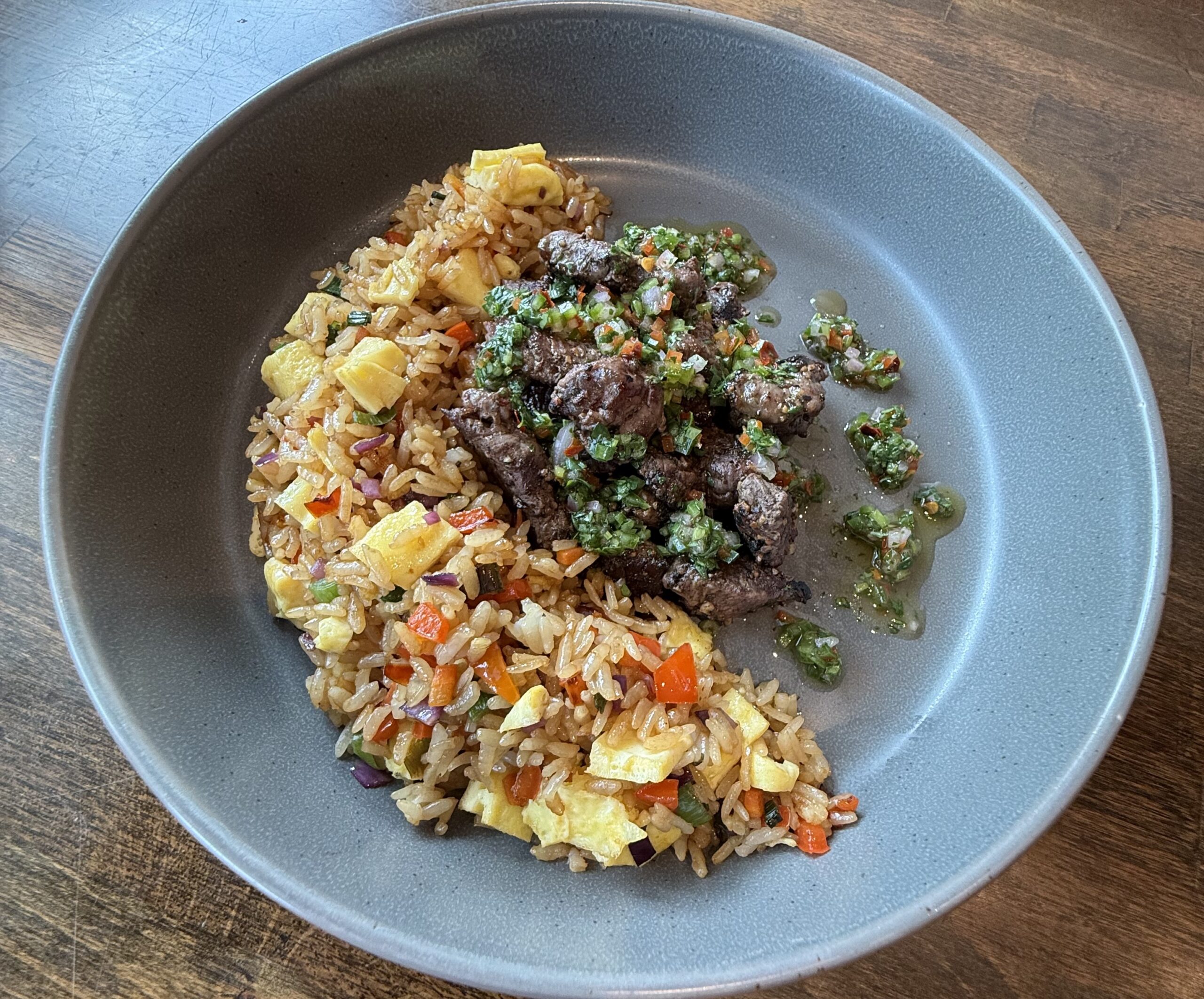 Course 2: Chimichurri beef tips with Peruvian fried rice